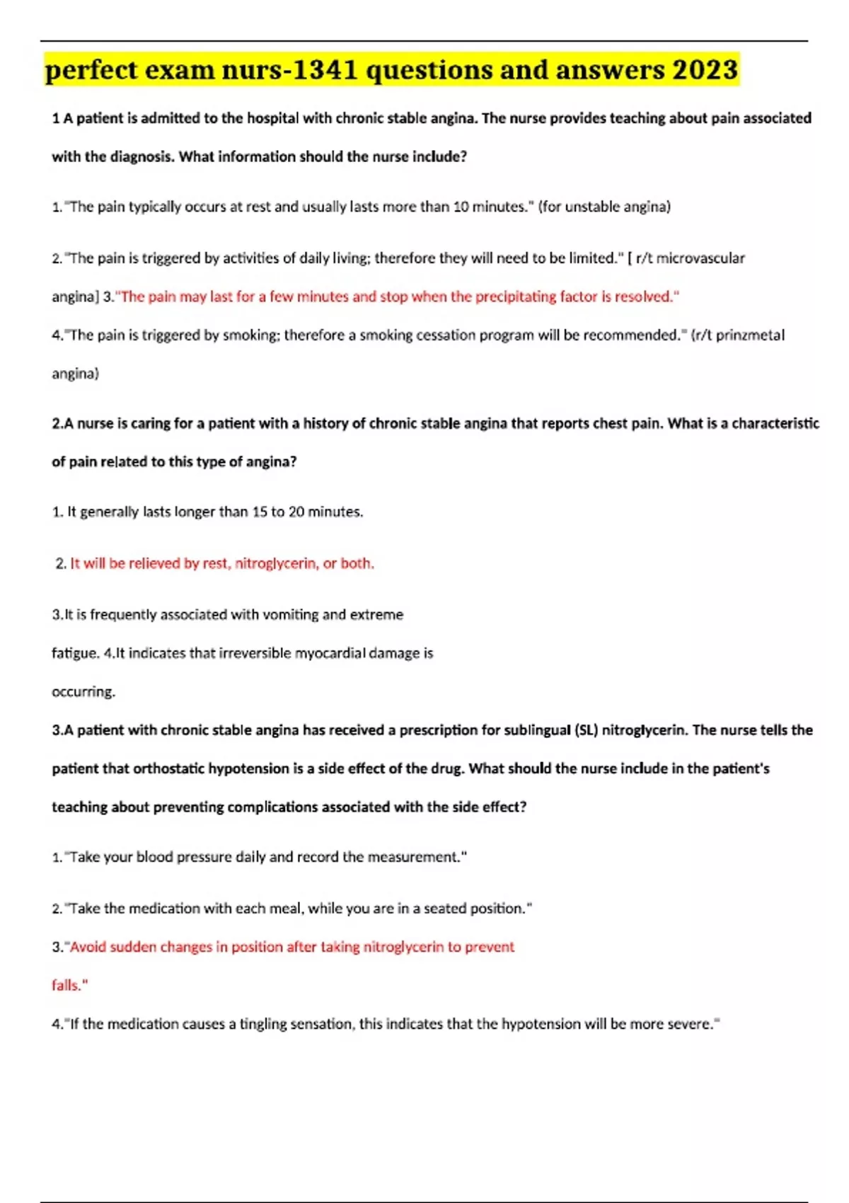 perfect exam nurs 1341 questions and answers 2024