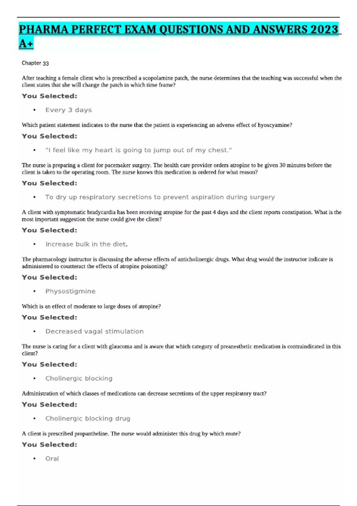 PHARMA PERFECT EXAM QUESTIONS AND ANSWERS 2024 A+