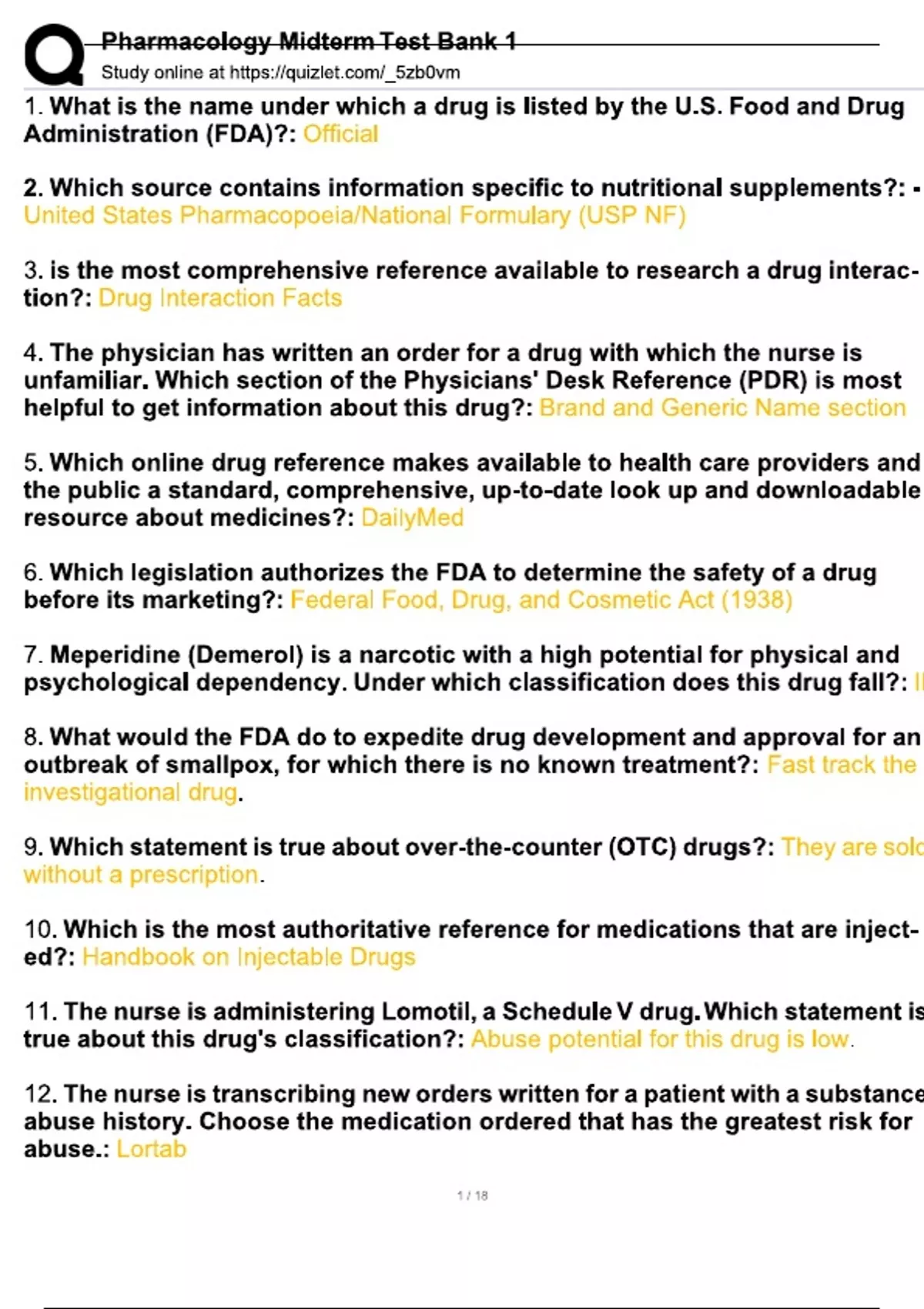 Pharmacology Midterm Test Bank 1 (COMPLETE ANSWERS) - 100% TRUSTED Complete, trusted solutions and explanations