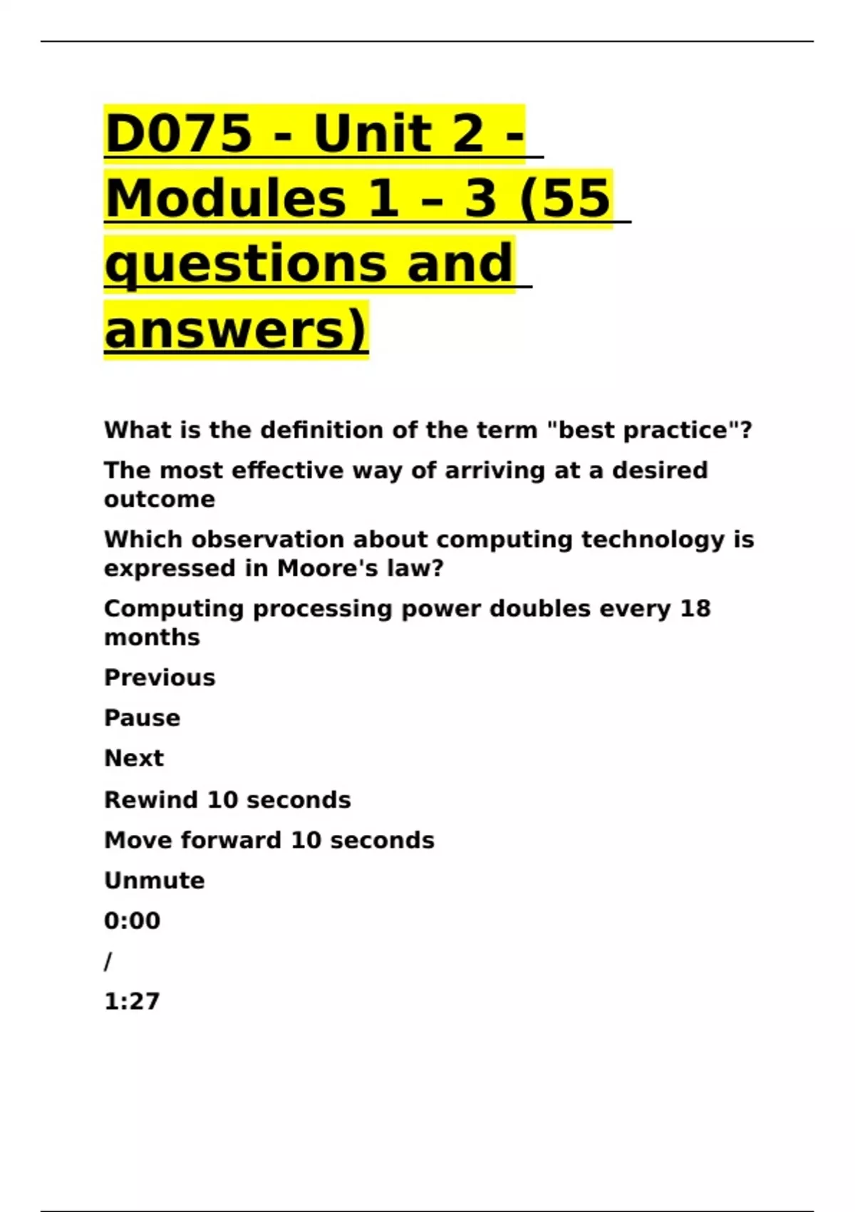 D075 - Unit 2 - Modules 1 – 3 (55 questions and answers).