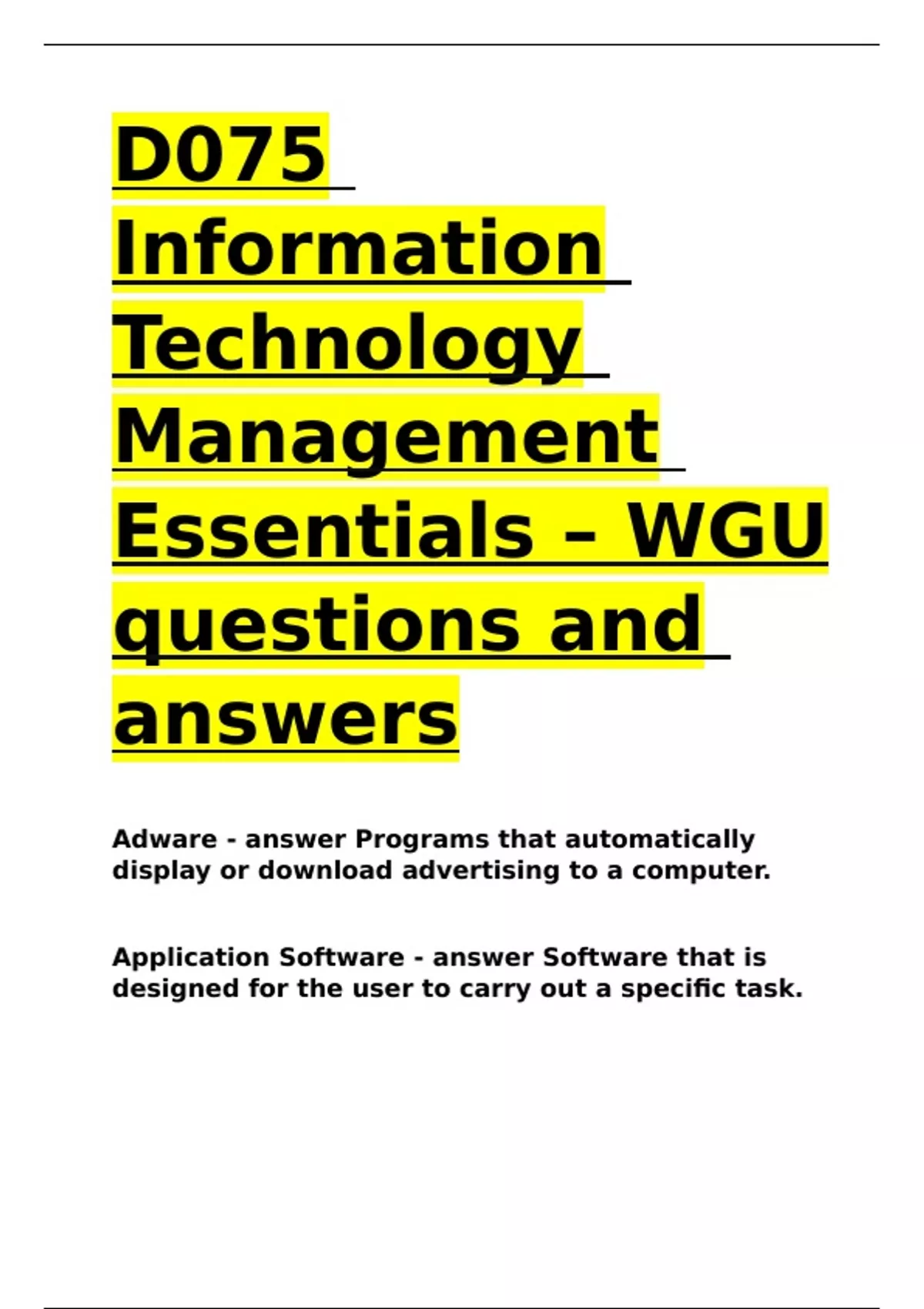D075 Information Technology Management Essentials – WGU questions and answers.