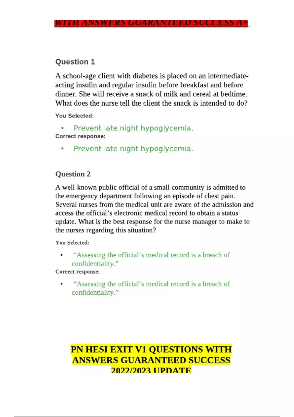 PN HESI EXIT V1 QUESTIONS WITH ANSWERS GUARANTEED SUCCESS UPDATE