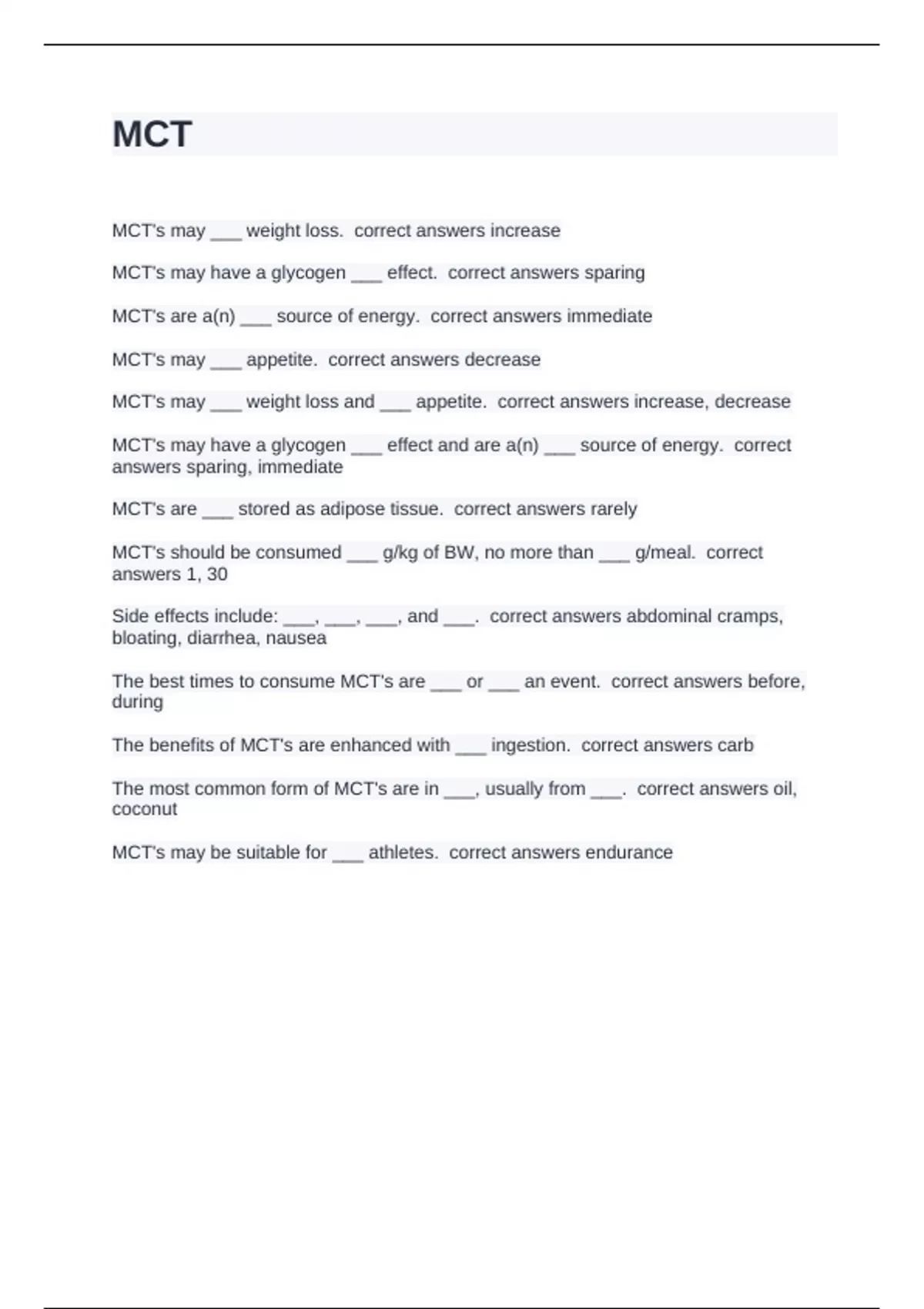 MCT's may ___ appetite. correct answers decrease