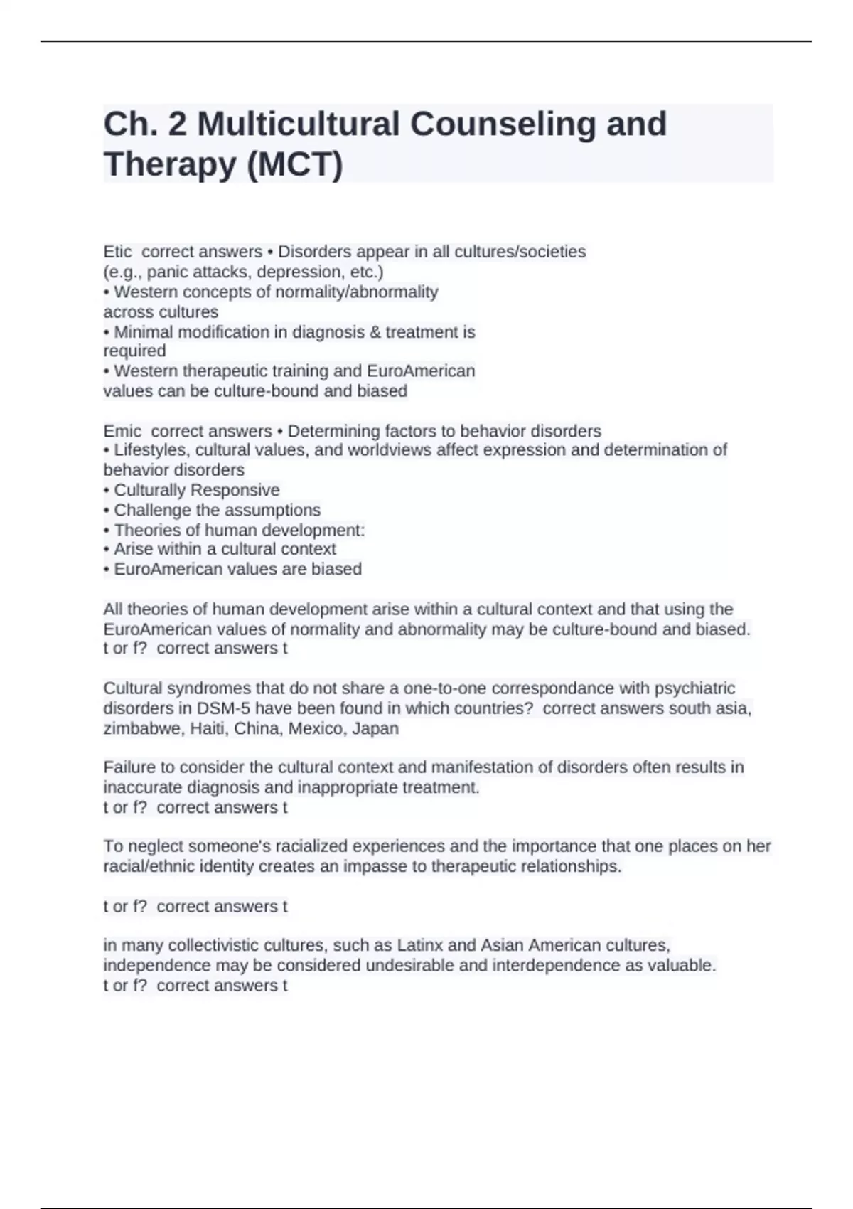 Etic correct answers • Disorders appear in all cultures/societies