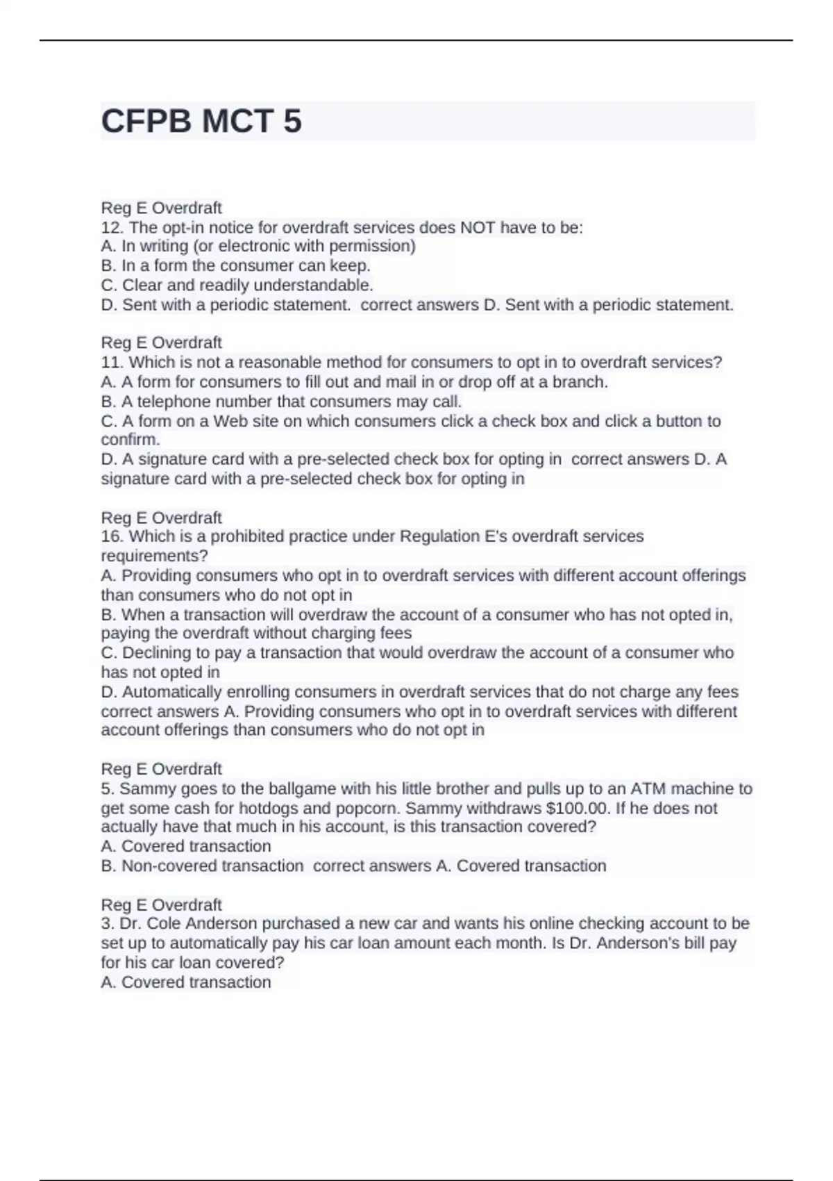 correct answers A. Providing consumers who opt in to overdraft services with different