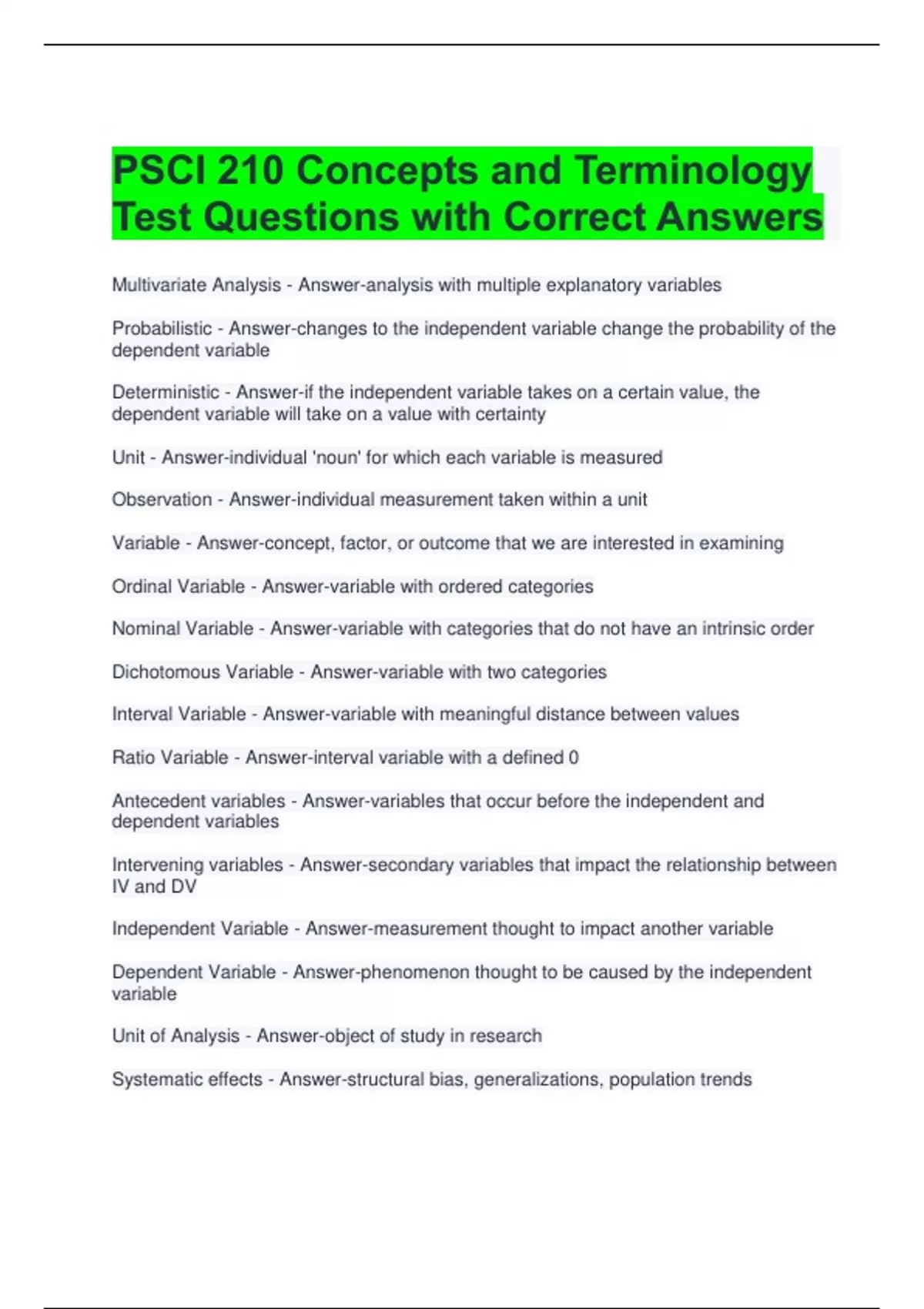 Test Questions with Correct Answers