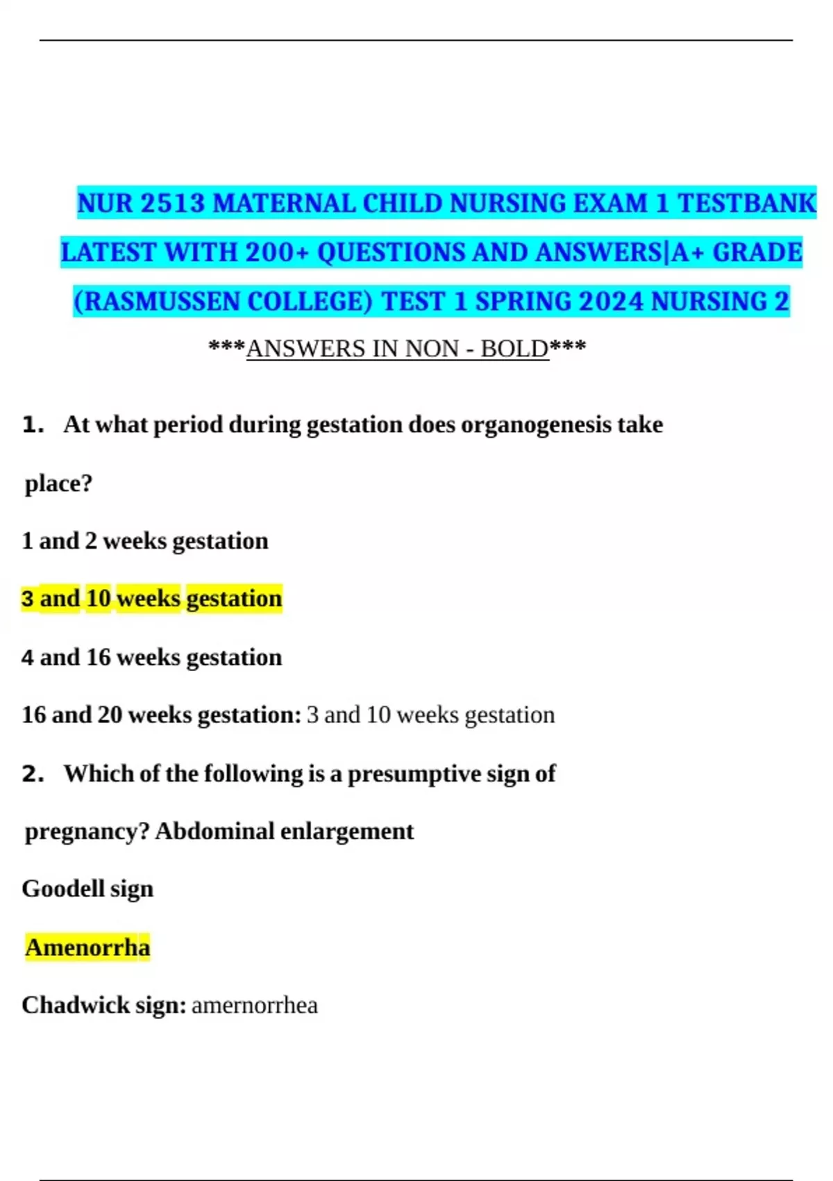 (RASMUSSEN COLLEGE) TEST 1 SPRING 2024 NURSING 2