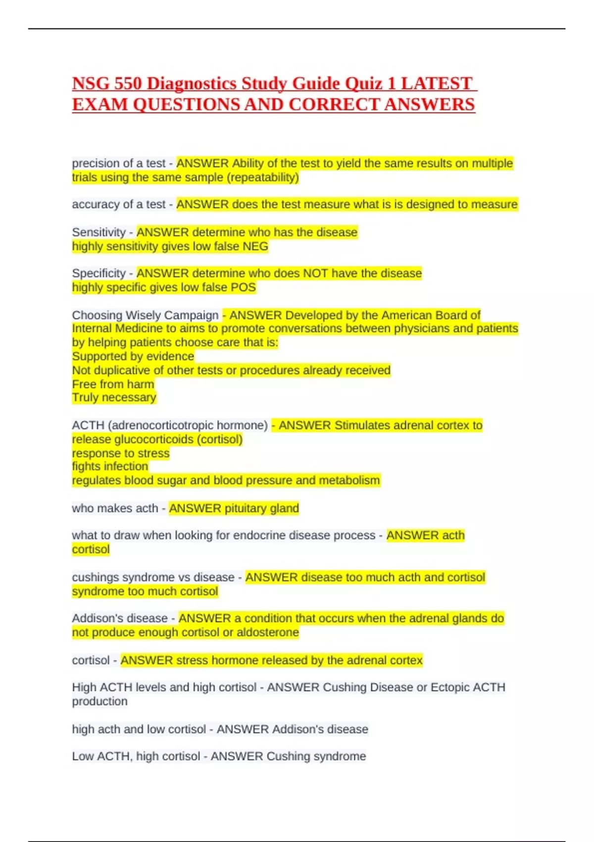 high acth and low cortisol - ANSWER Addison's disease