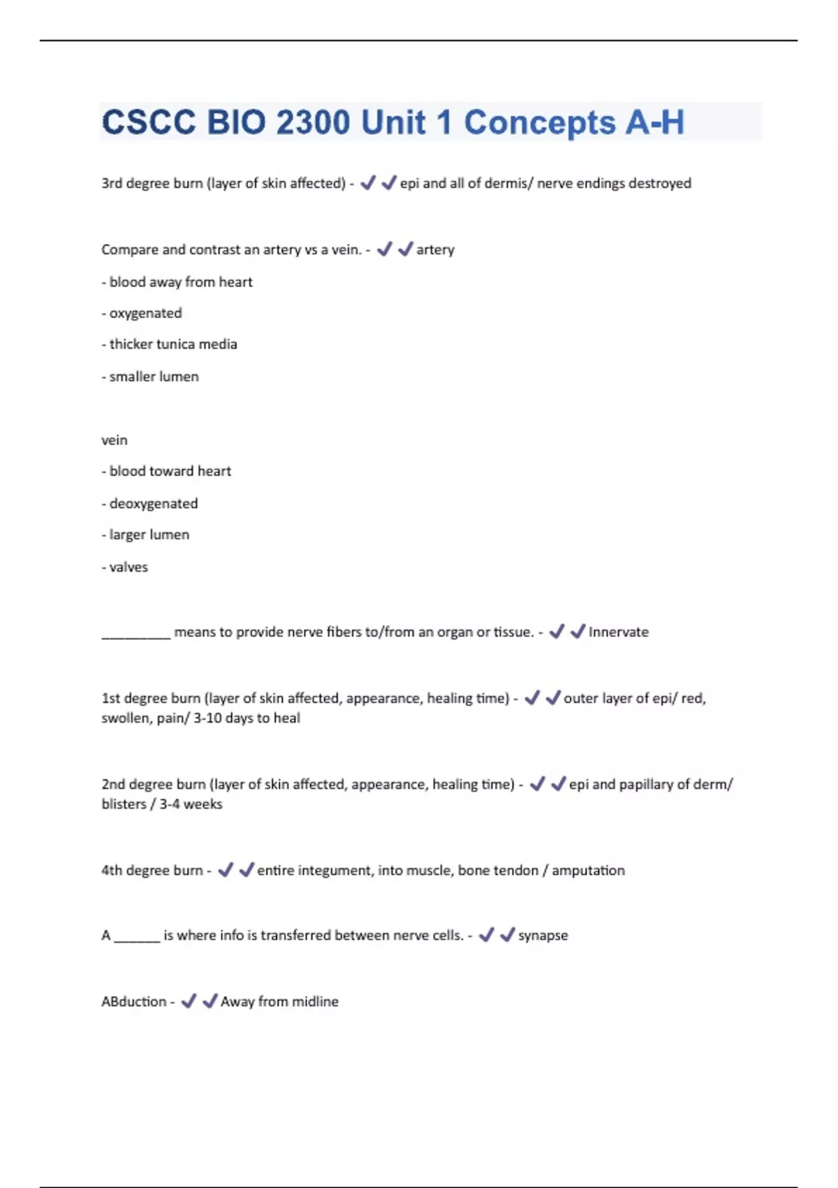 CSCC BIO 2300 Unit 1 Concepts A-H Questions With Correct Solutions, Already Passed!!