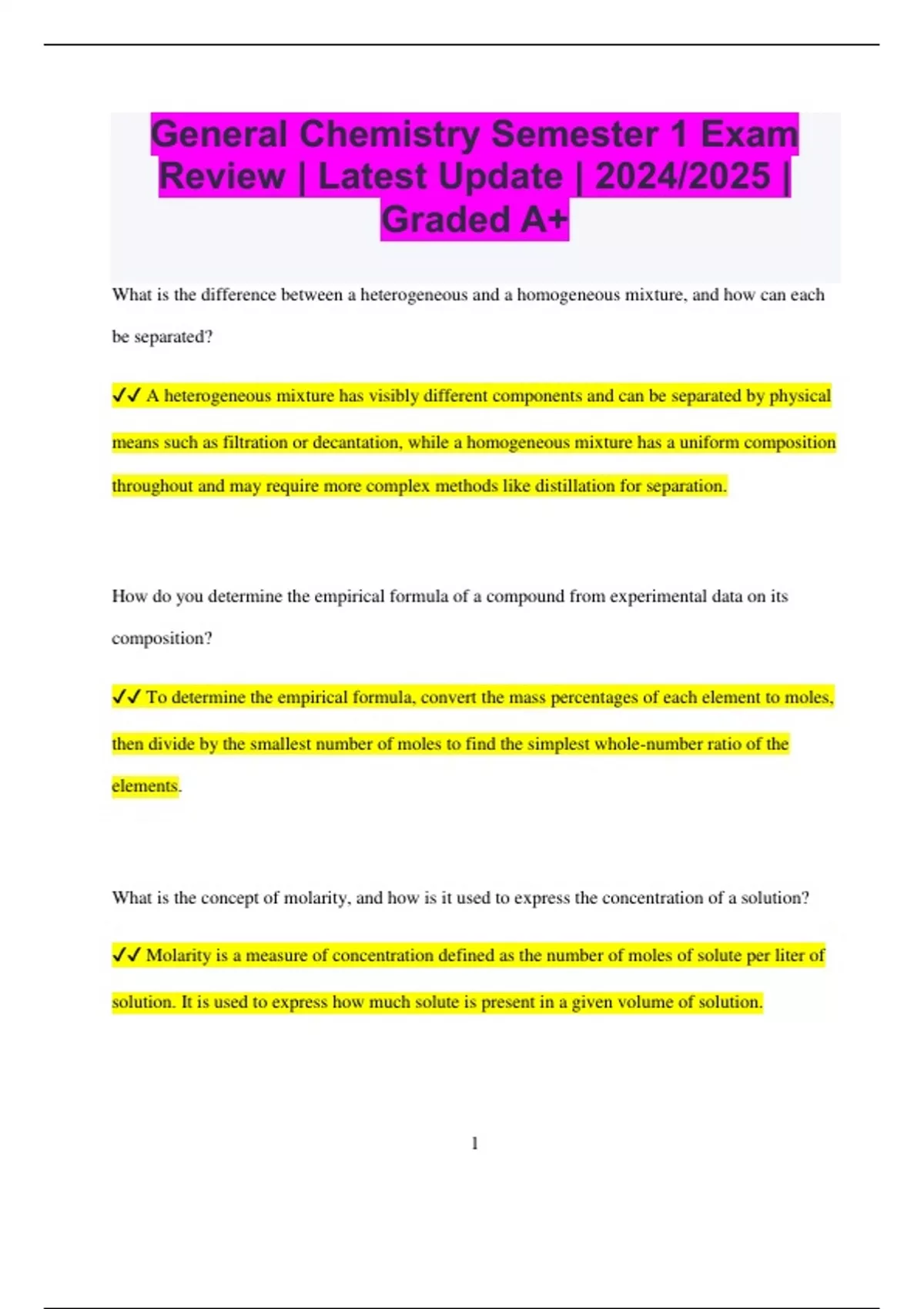 ✔✔ A heterogeneous mixture has visibly different components and can be separated by physical