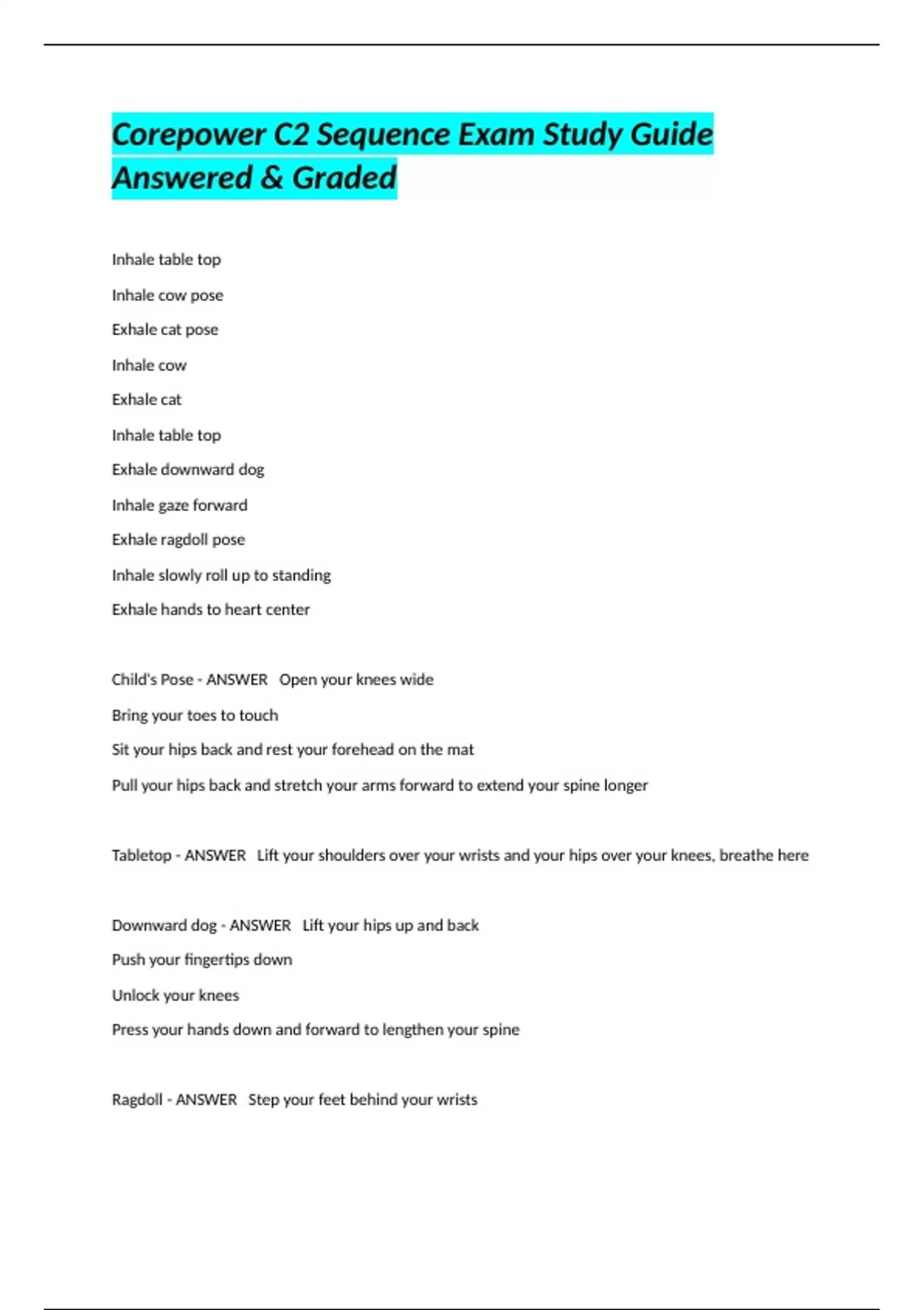 Corepower C2 Sequence Exam Study Guide Answered & Graded