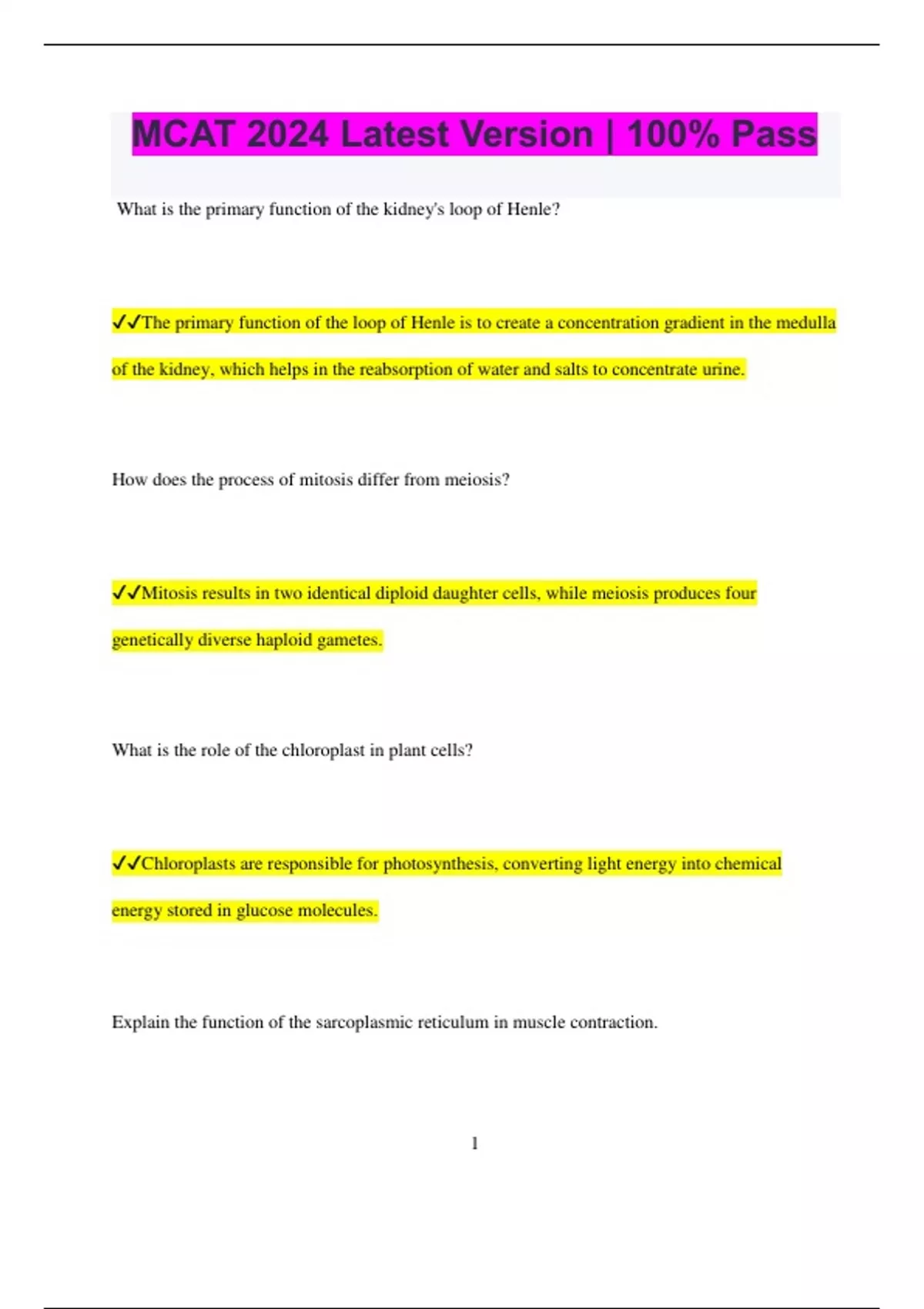 ✔✔The primary function of the loop of Henle is to create a concentration gradient in the medulla