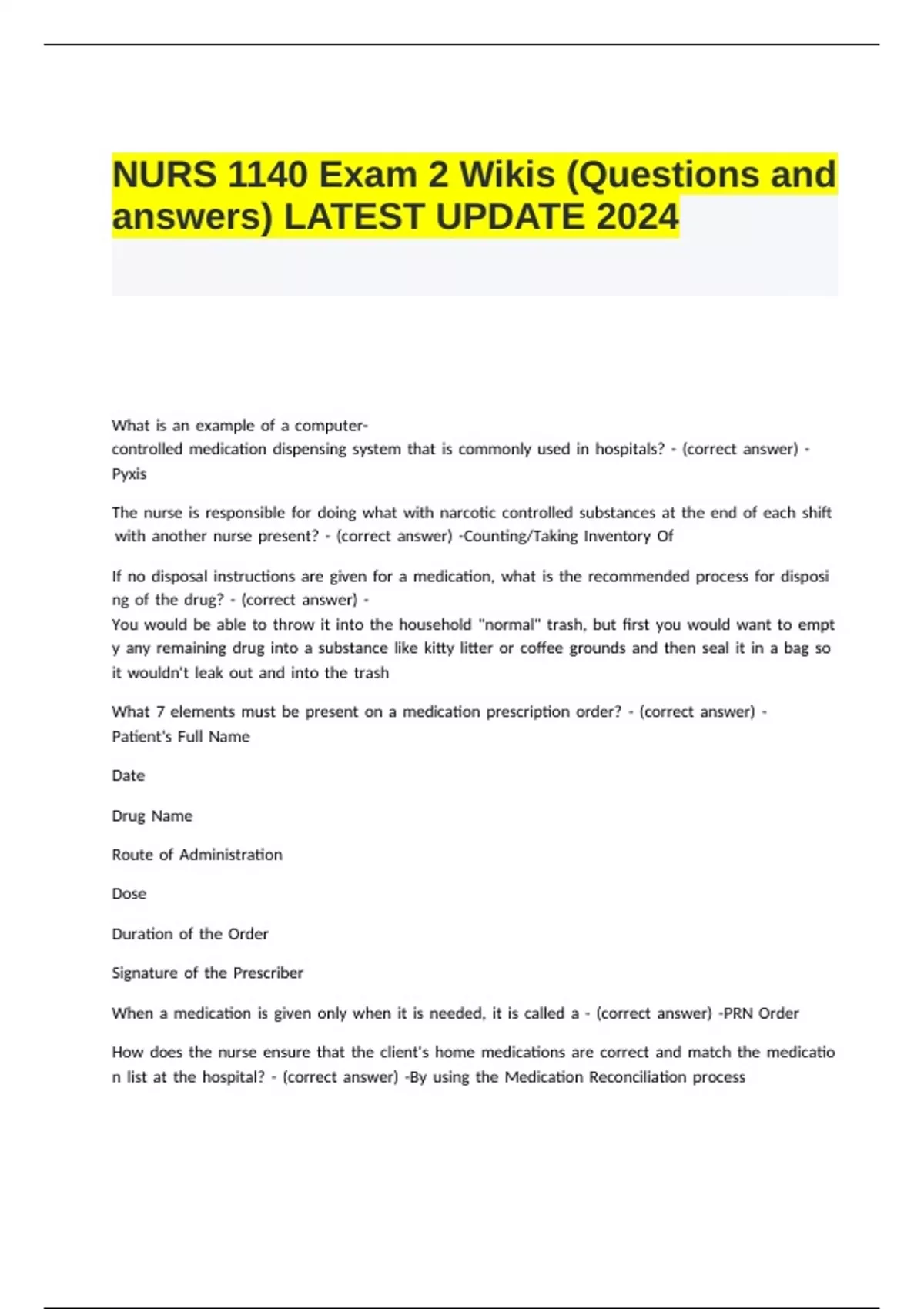 NURS 1140 Exam 2 Wikis (Questions and answers) LATEST UPDATE 2024.