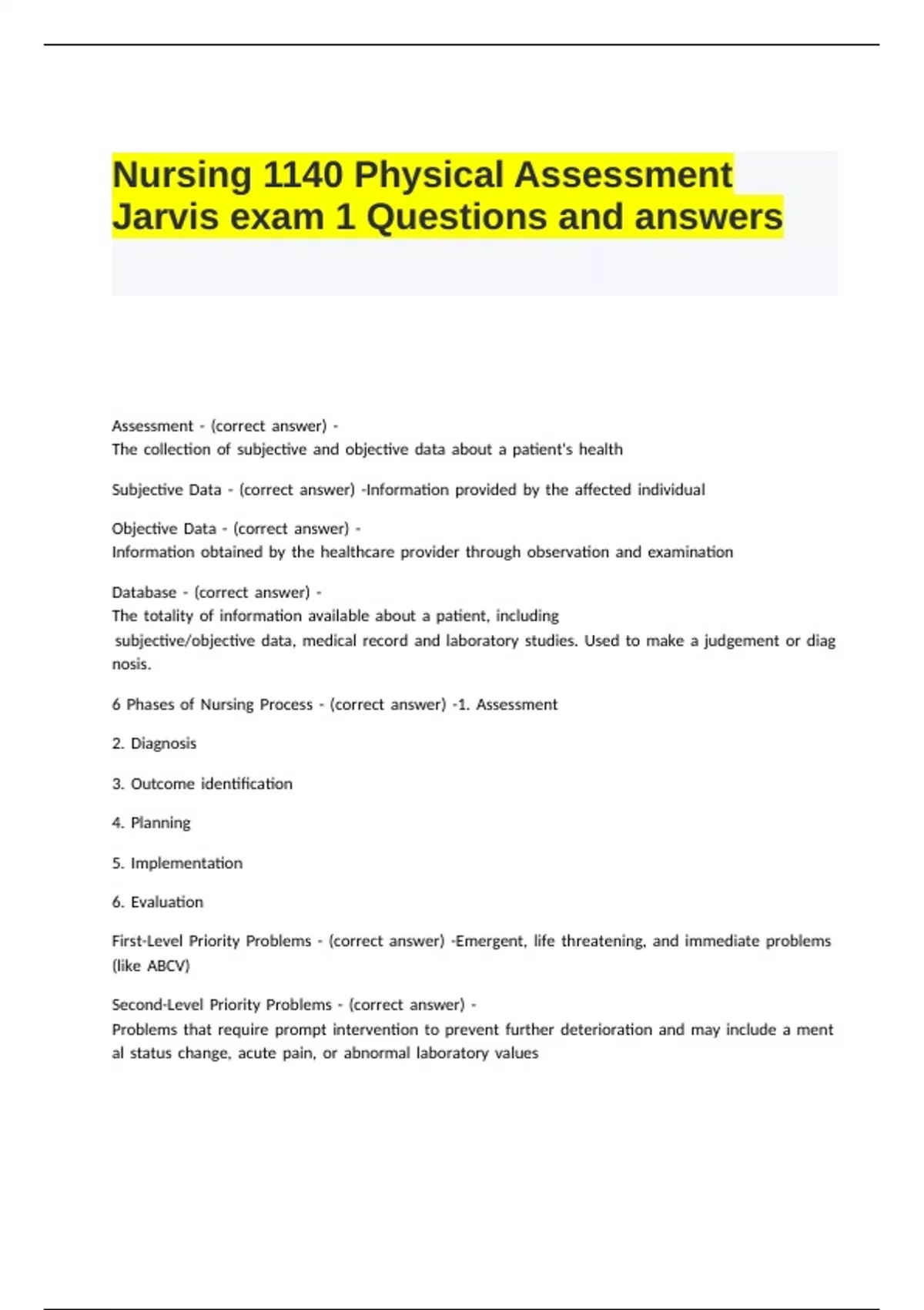 6 .Phases .of .Nursing .Process .- .(correct .answer) .-1. .Assessment