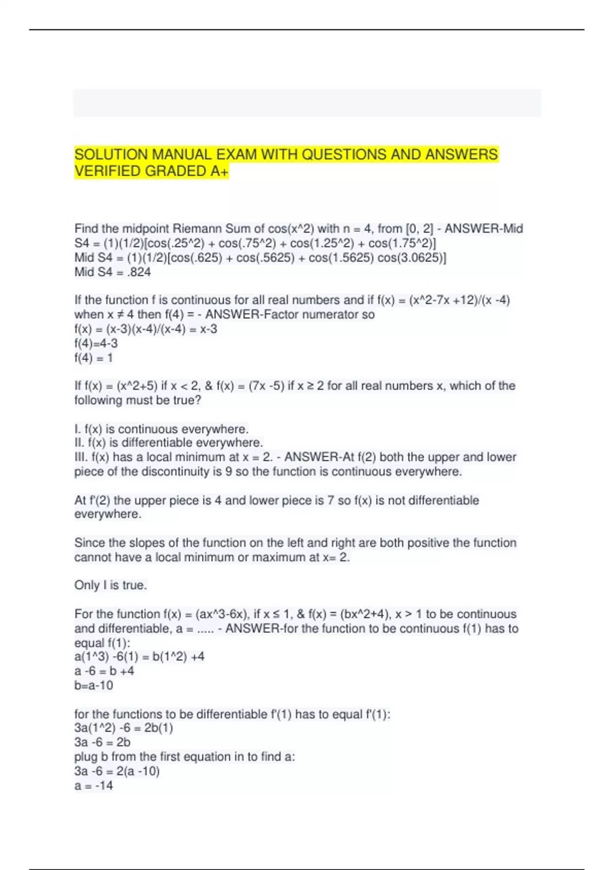 SOLUTION MANUAL EXAM WITH QUESTIONS AND ANSWERS