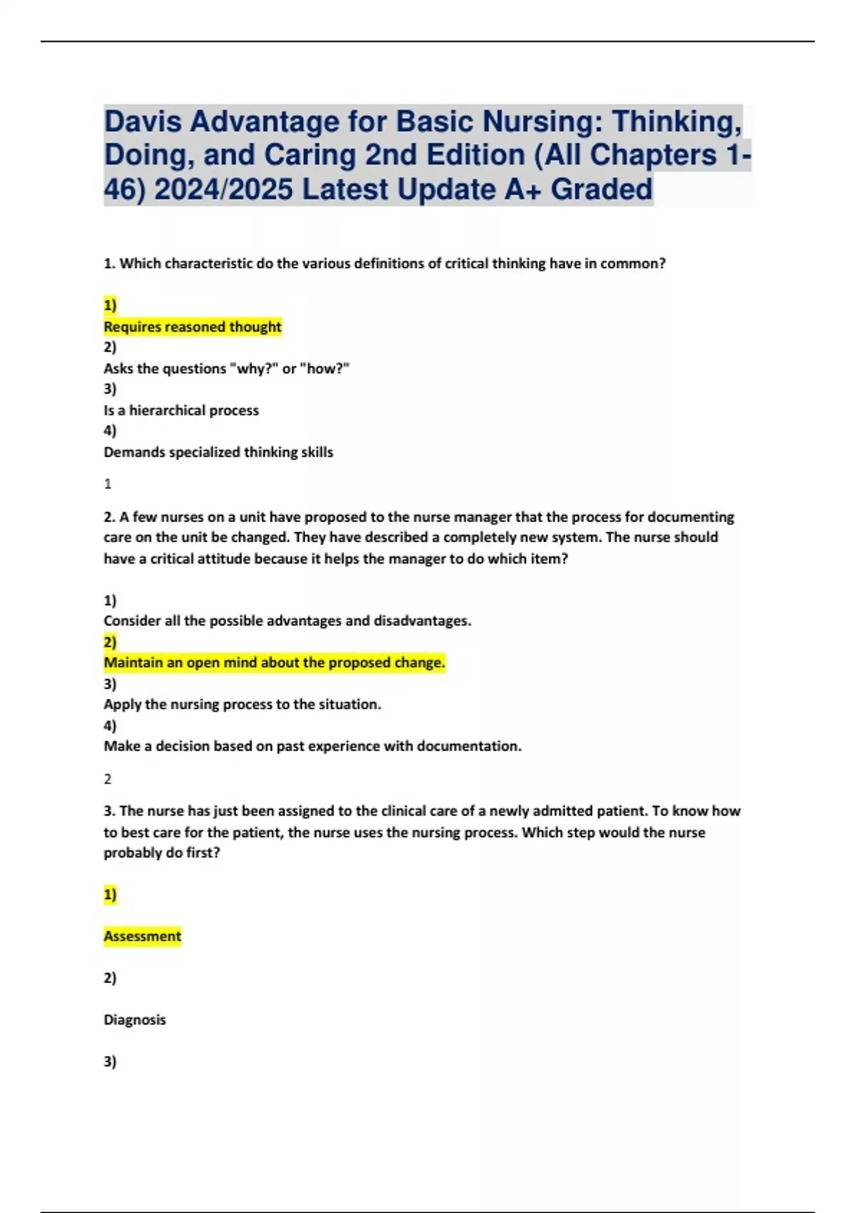 3. The nurse has just been assigned to the clinical care of a newly admitted patient. To know how
