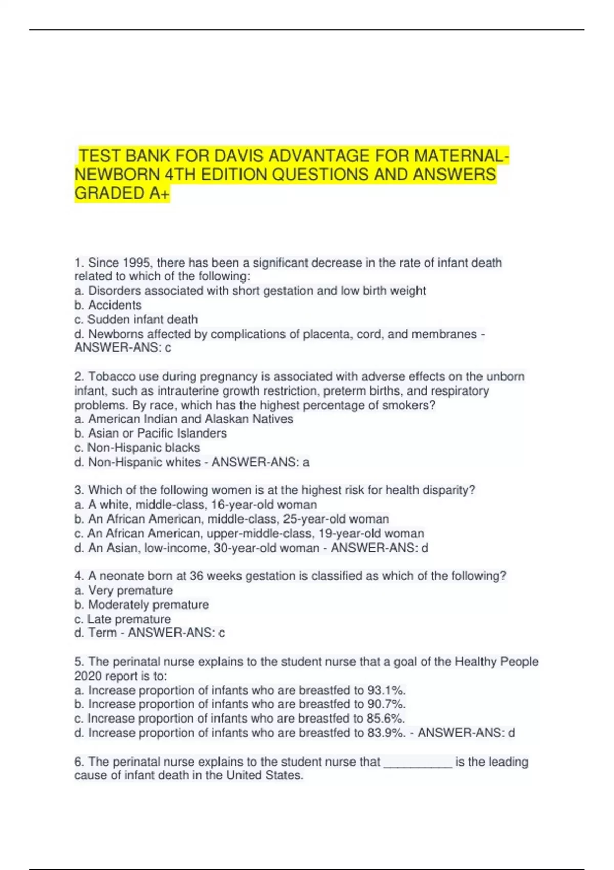 TEST BANK FOR DAVIS ADVANTAGE FOR MATERNAL-
