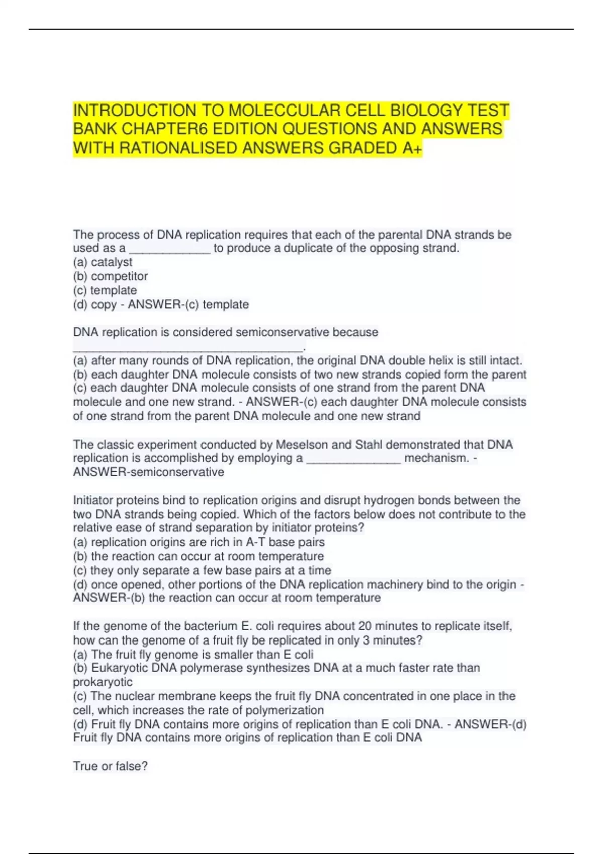 (d) Fruit fly DNA contains more origins of replication than E coli DNA. - ANSWER-(d)