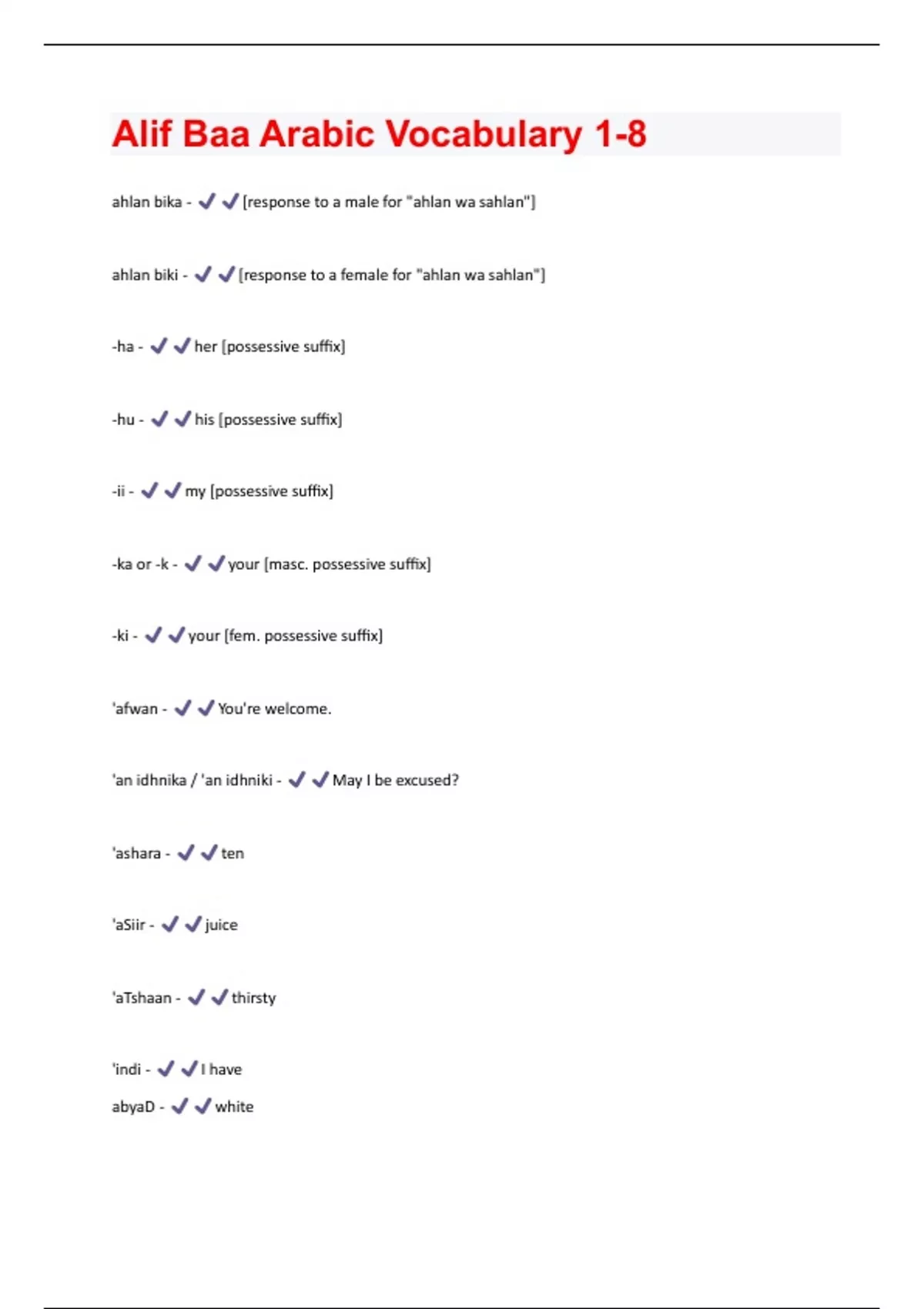 ahlan biki - [response to a female for "ahlan wa sahlan"]