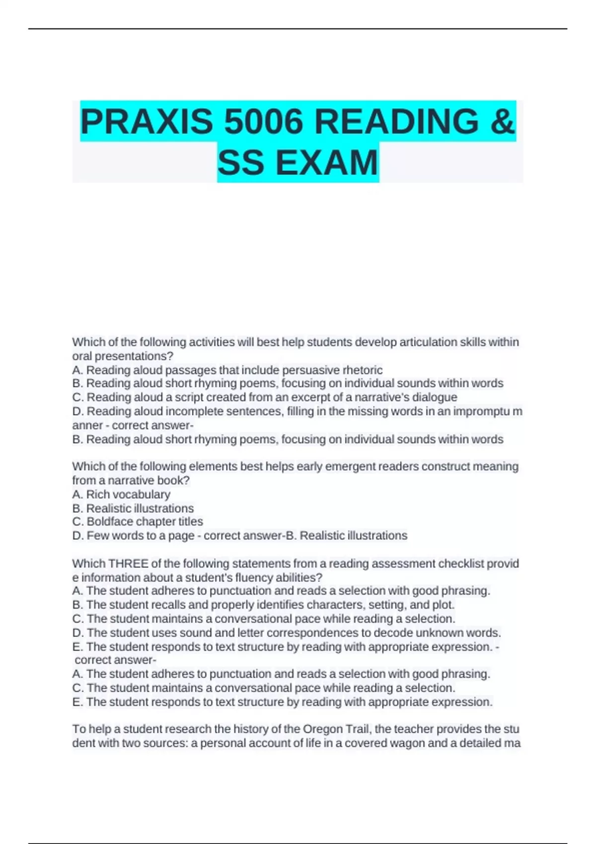 PRAXIS 5006 READING & SS