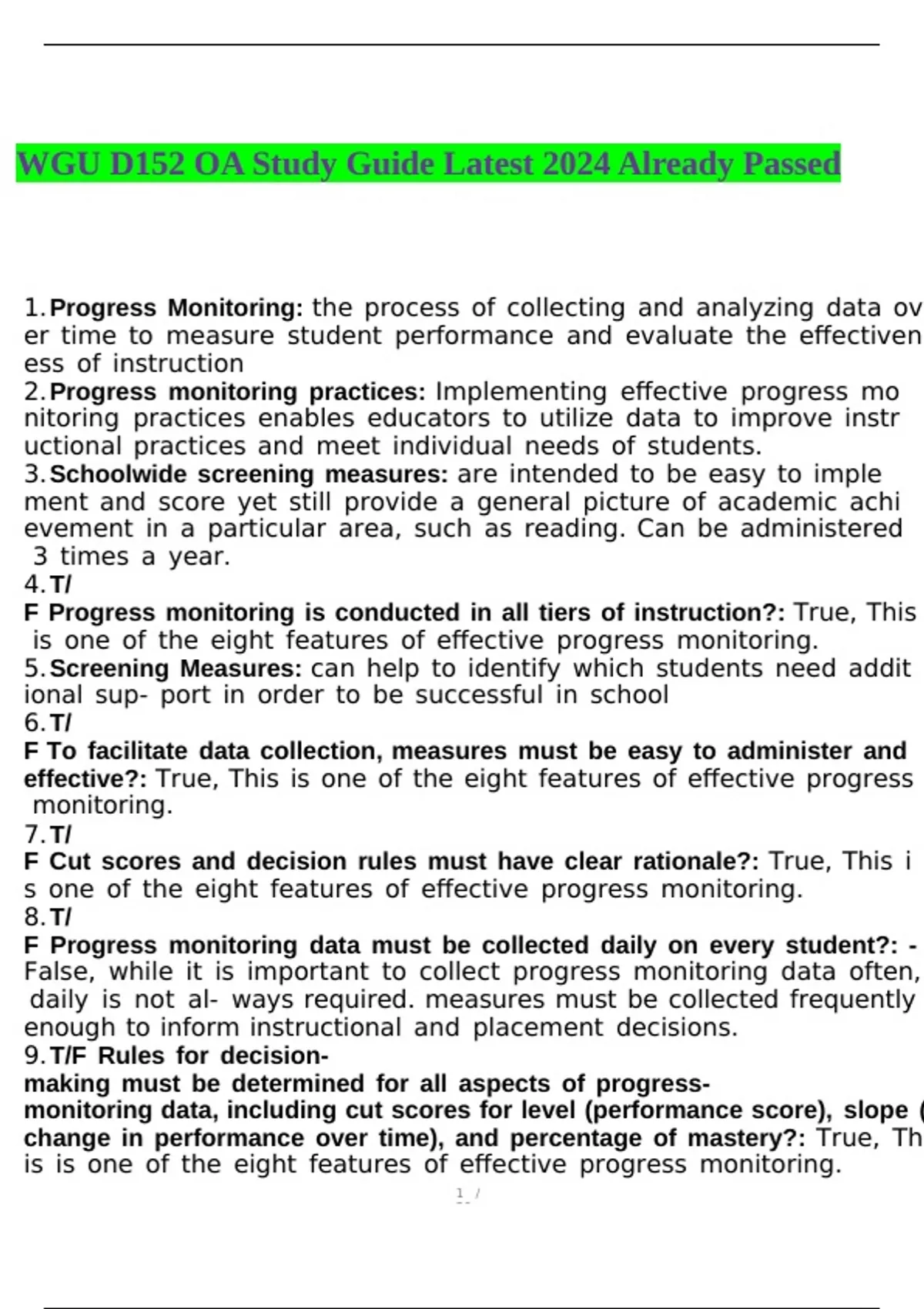 1.Progress Monitoring: the process of collecting and analyzing data ov