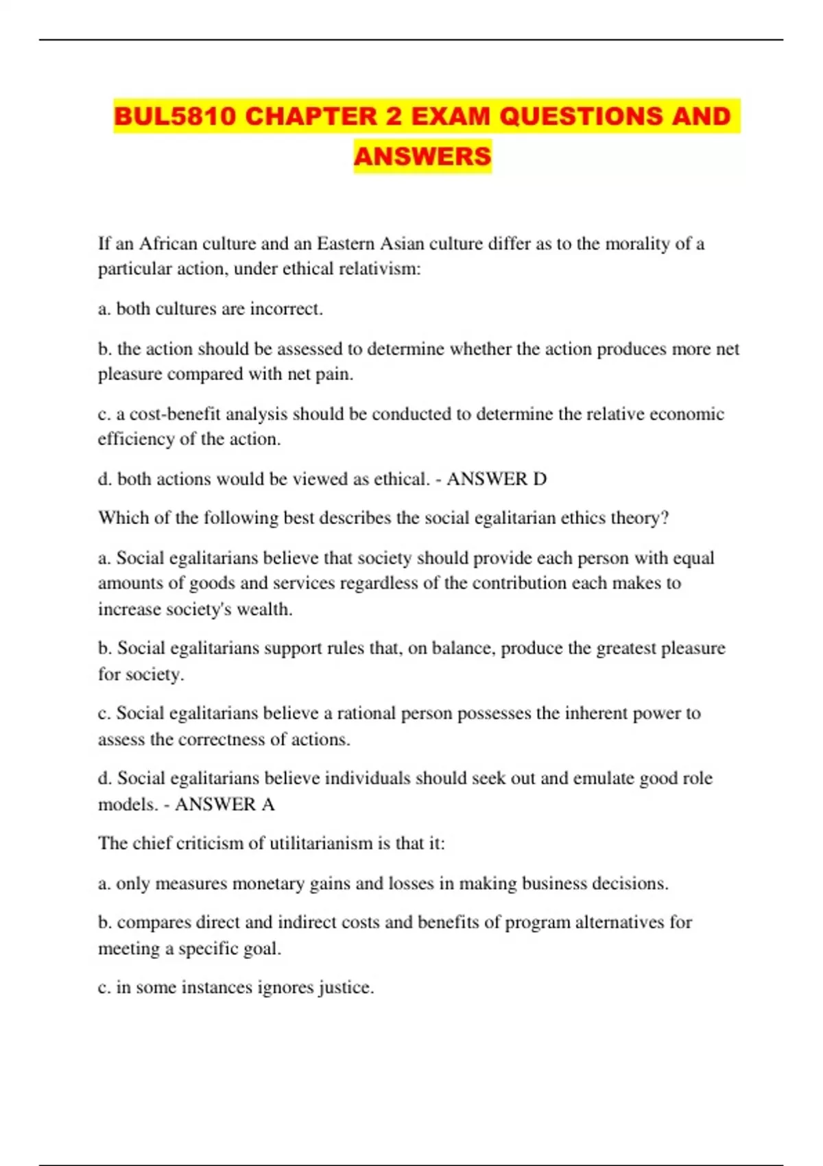 BUL5810 CHAPTER 2 EXAM QUESTIONS AND