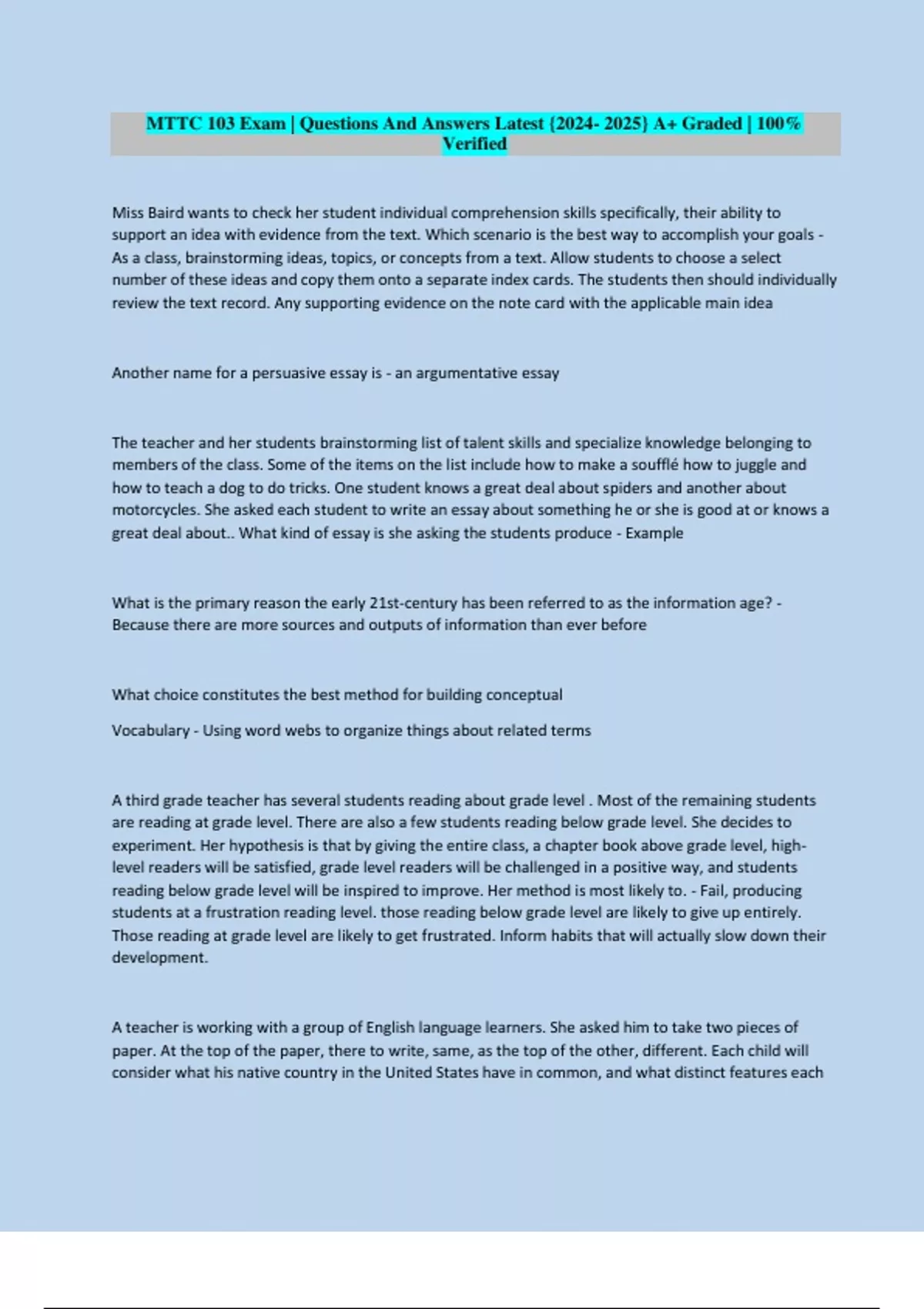great deal about.. What kind of essay is she asking the students produce - Example