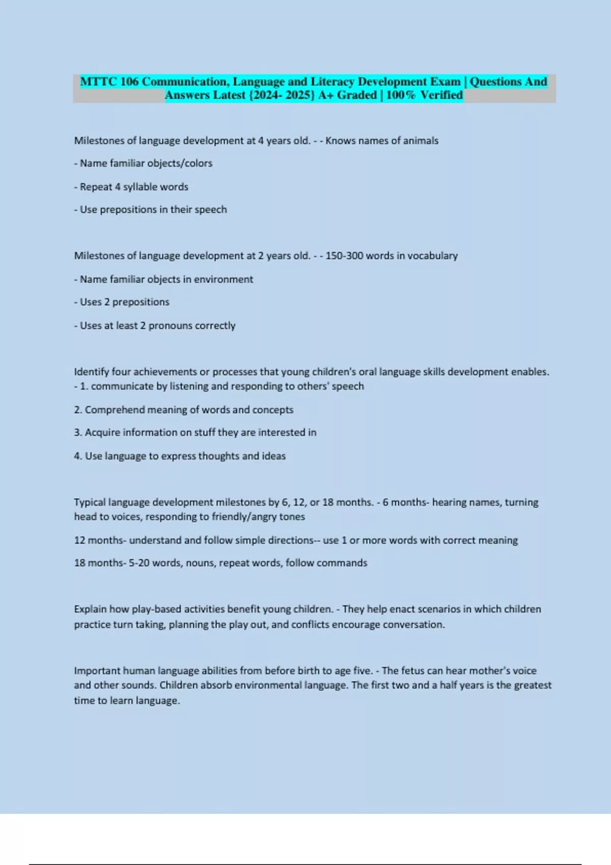 Answers Latest {2024- 2025} A+ Graded | 100% Verified