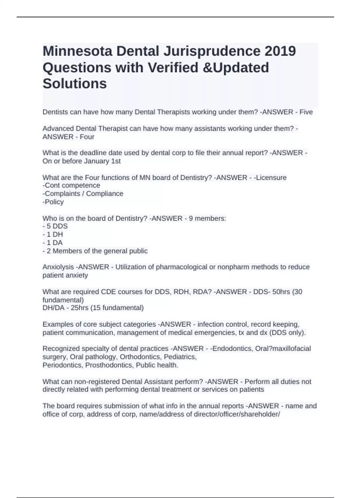 What are the Four functions of MN board of Dentistry? -ANSWER - -Licensure