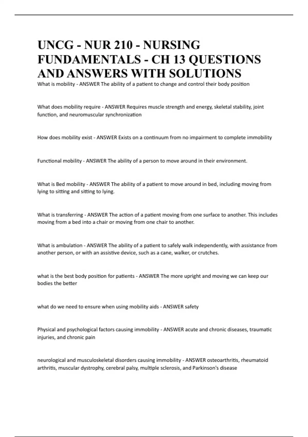 Diseases that cause diseases that can lead to immobility - ANSWER heart failure, chronic obstructive