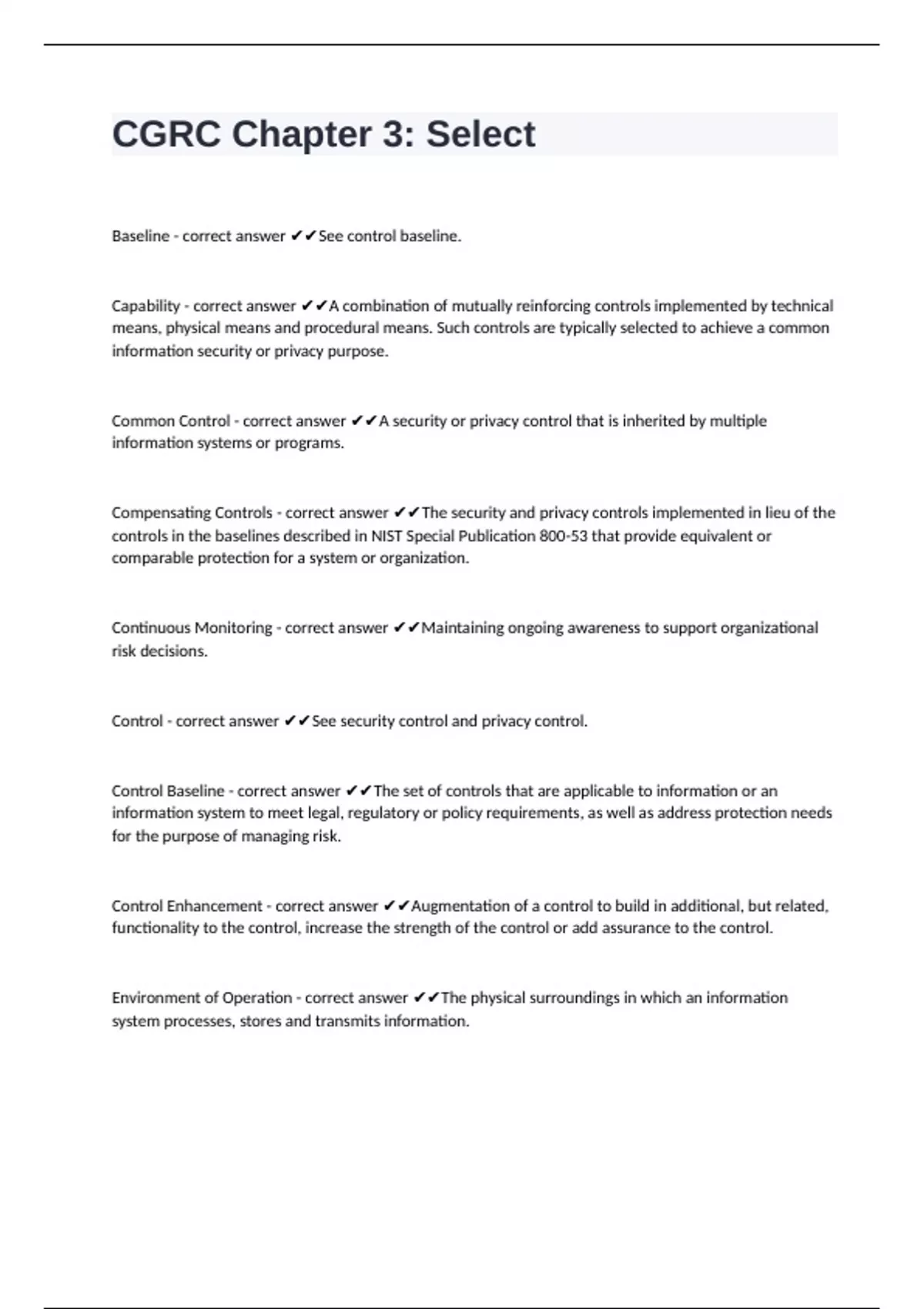 Control - correct answer ✔✔See security control and privacy control.
