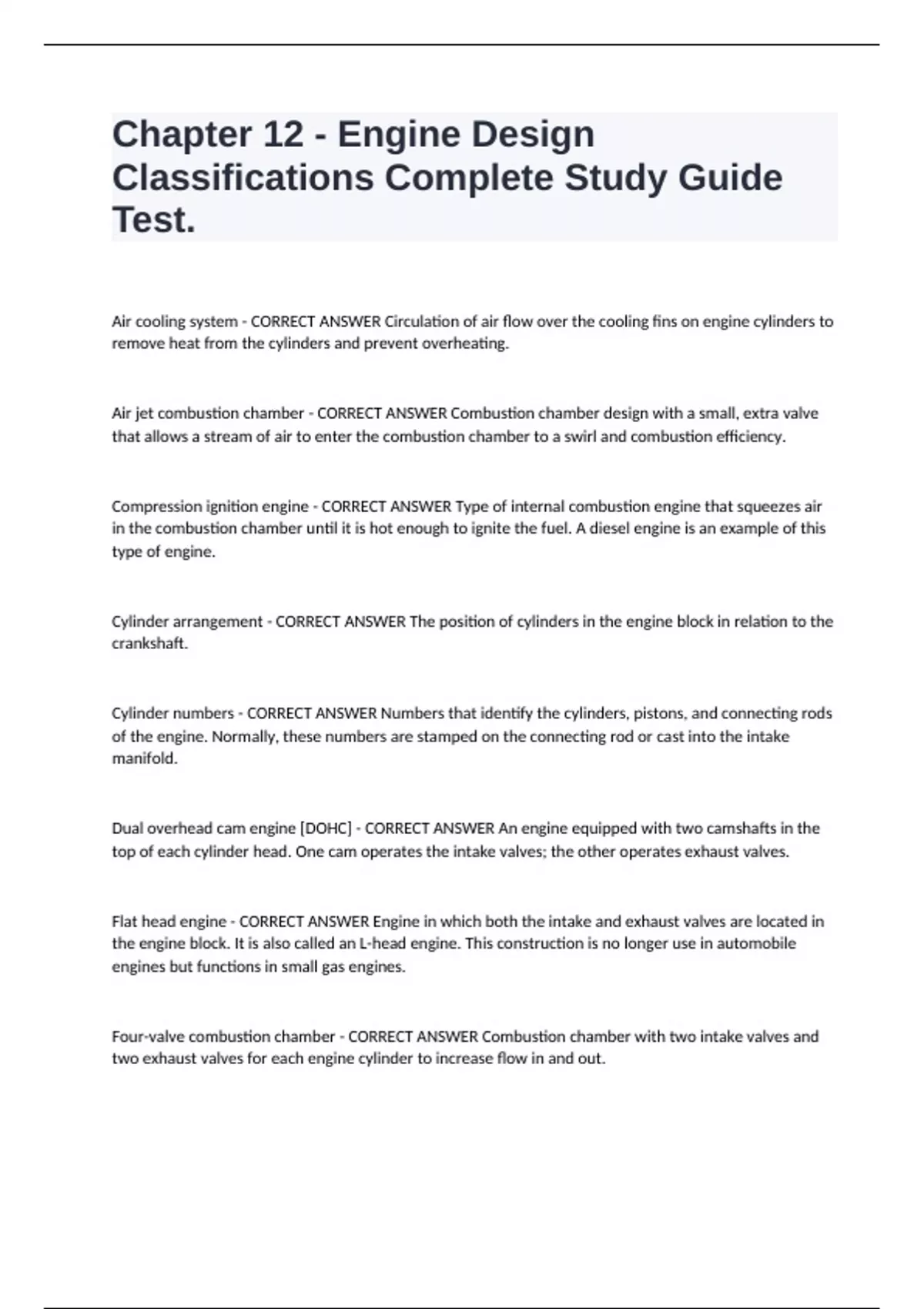 Flat head engine - CORRECT ANSWER Engine in which both the intake and exhaust valves are located in