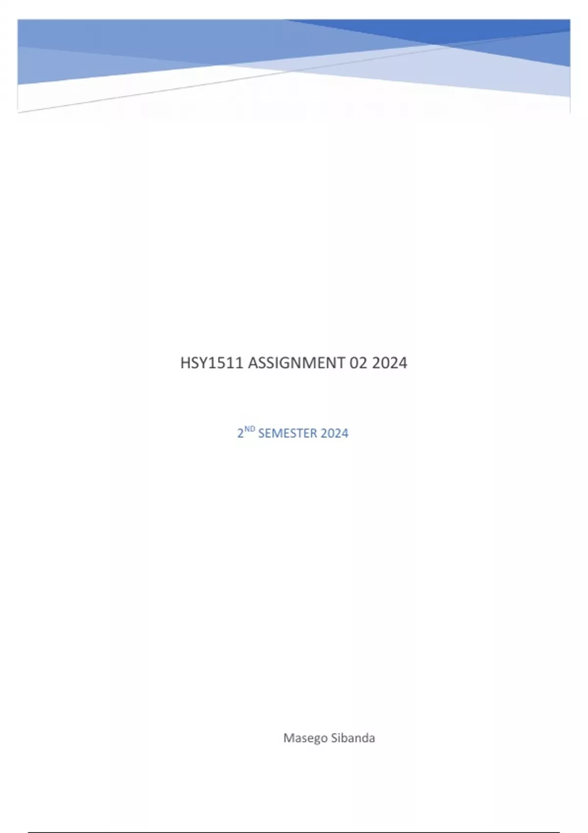 HSY1511 ASSIGNMENT 2 2024 SEMESTER 2 FULL ANSWERS DUE 30 AUGUST