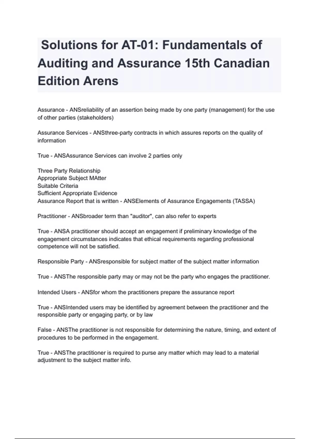 Assurance Report that is written - ANSElements of Assurance Engagements (TASSA)