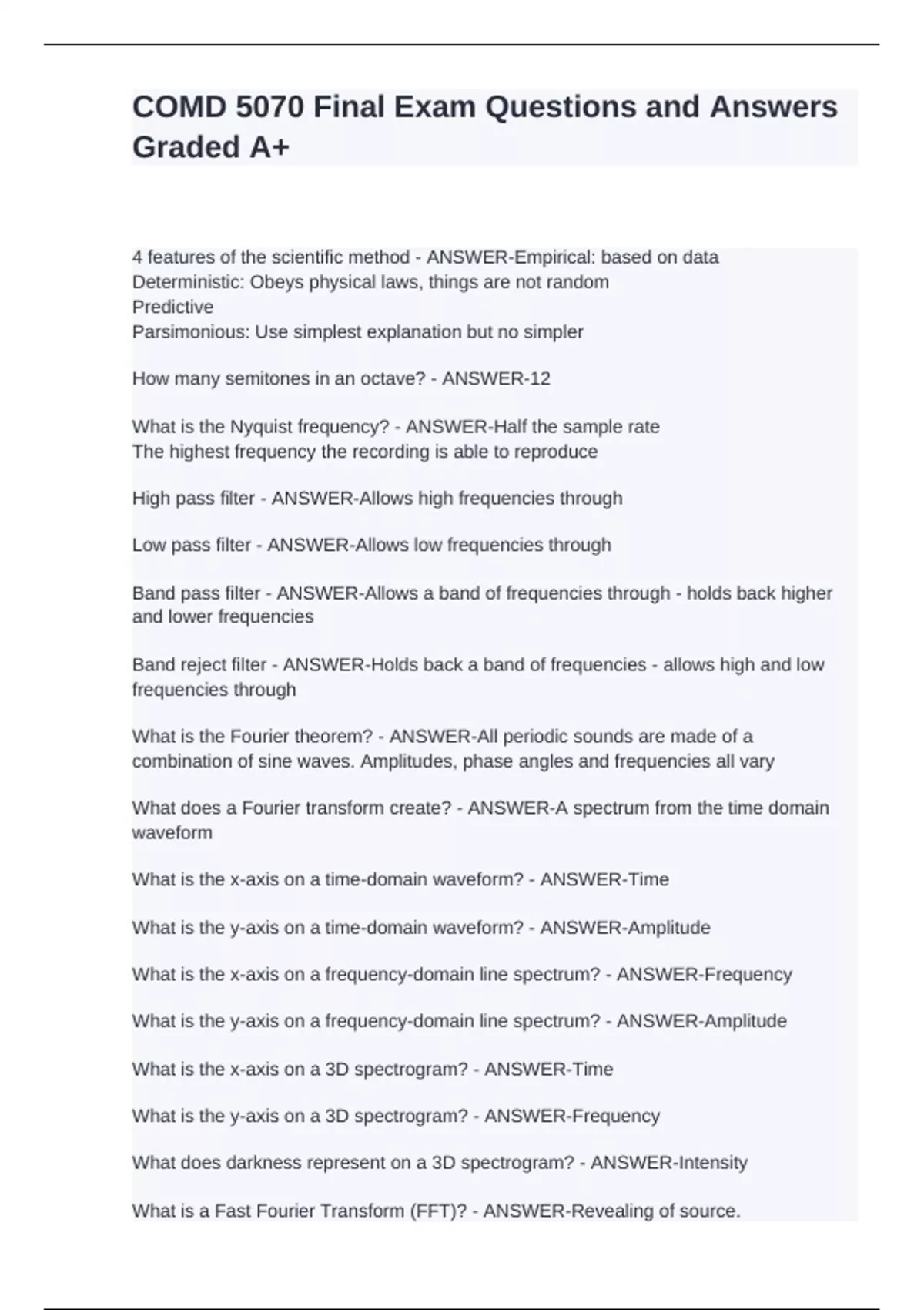 What is the Fourier theorem? - ANSWER-All periodic sounds are made of a