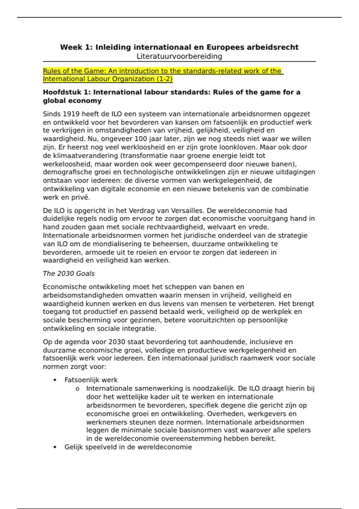 Document met literatuur en jurisprudentie van het vak Europees en Internationaal Arbeidsrecht. Deze vakken zijn nu gesplist in Europees Arbeidsrecht en Maatschappelijk Verantwoord Ondernemen. Het document kan dus afwijken van de lesstof.