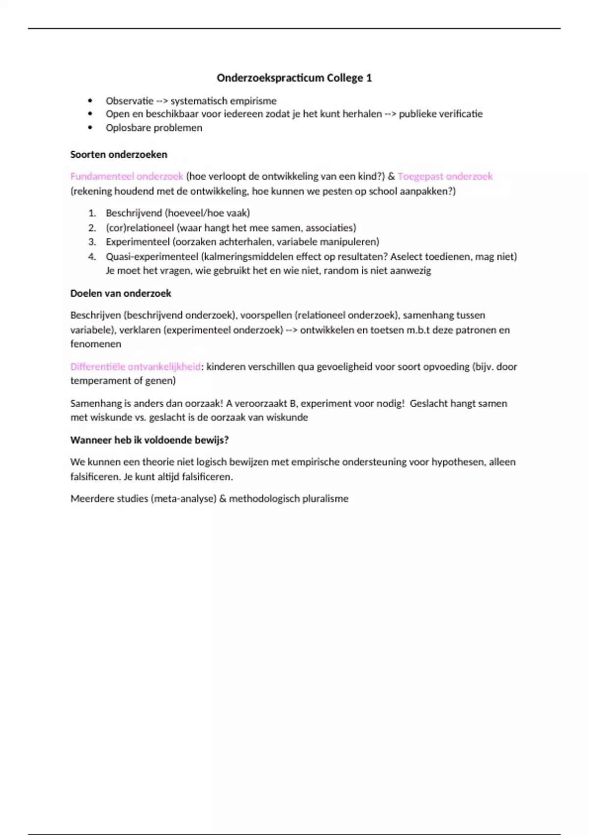Fundamenteel onderzoek (hoe verloopt de ontwikkeling van een kind?) & Toegepast onderzoek
