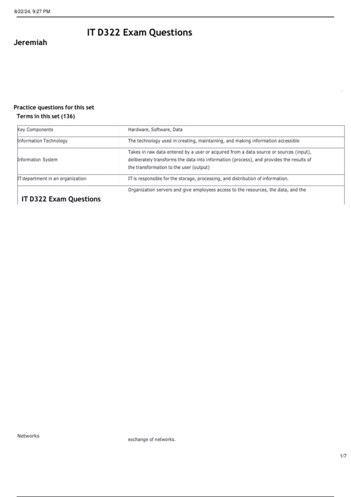 IT D322 Exam Questions