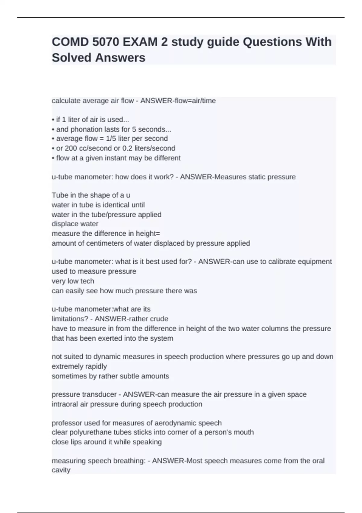 u-tube manometer: what is it best used for? - ANSWER-can use to calibrate equipment