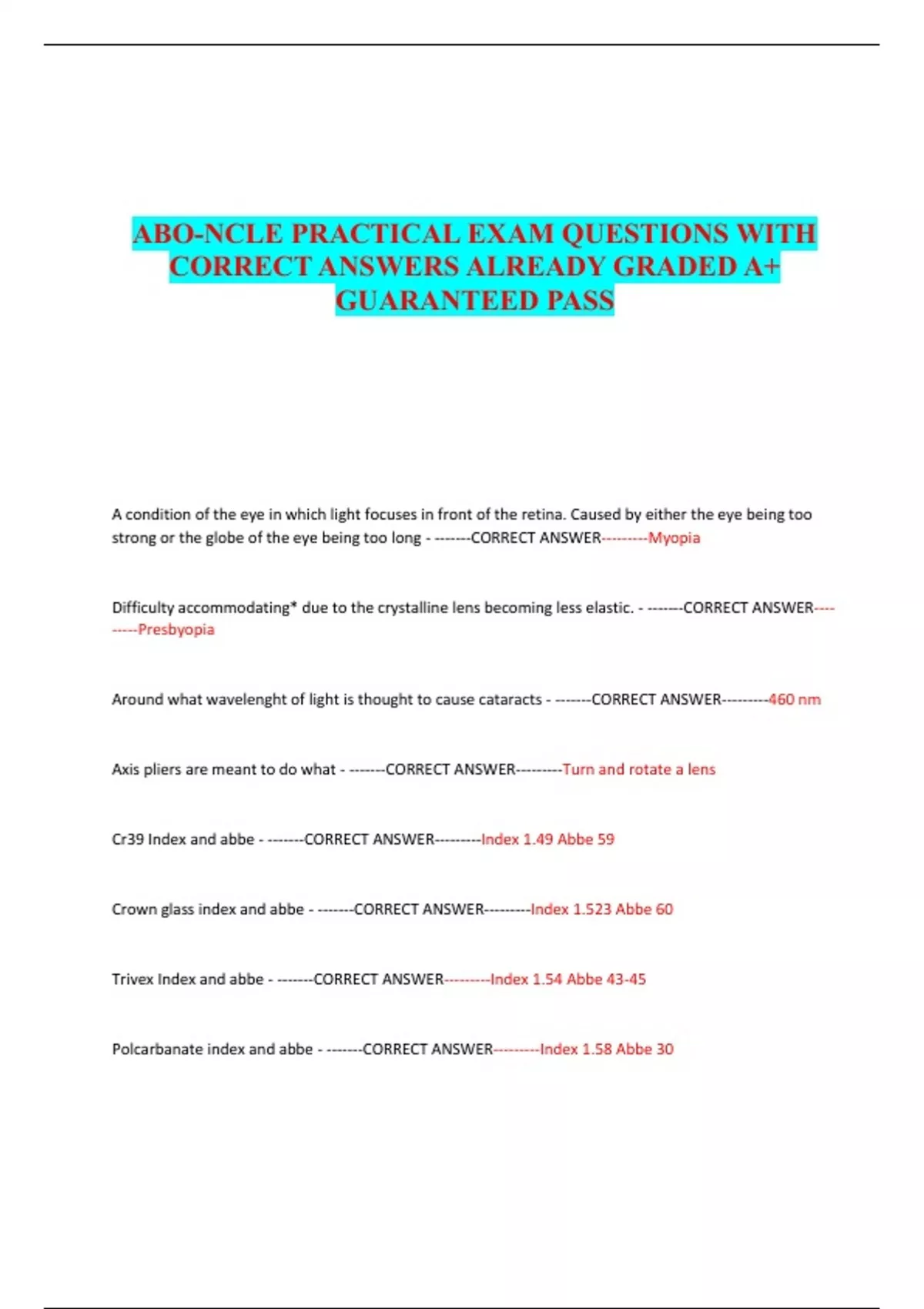 ABO-NCLE PRACTICAL EXAM QUESTIONS WITH