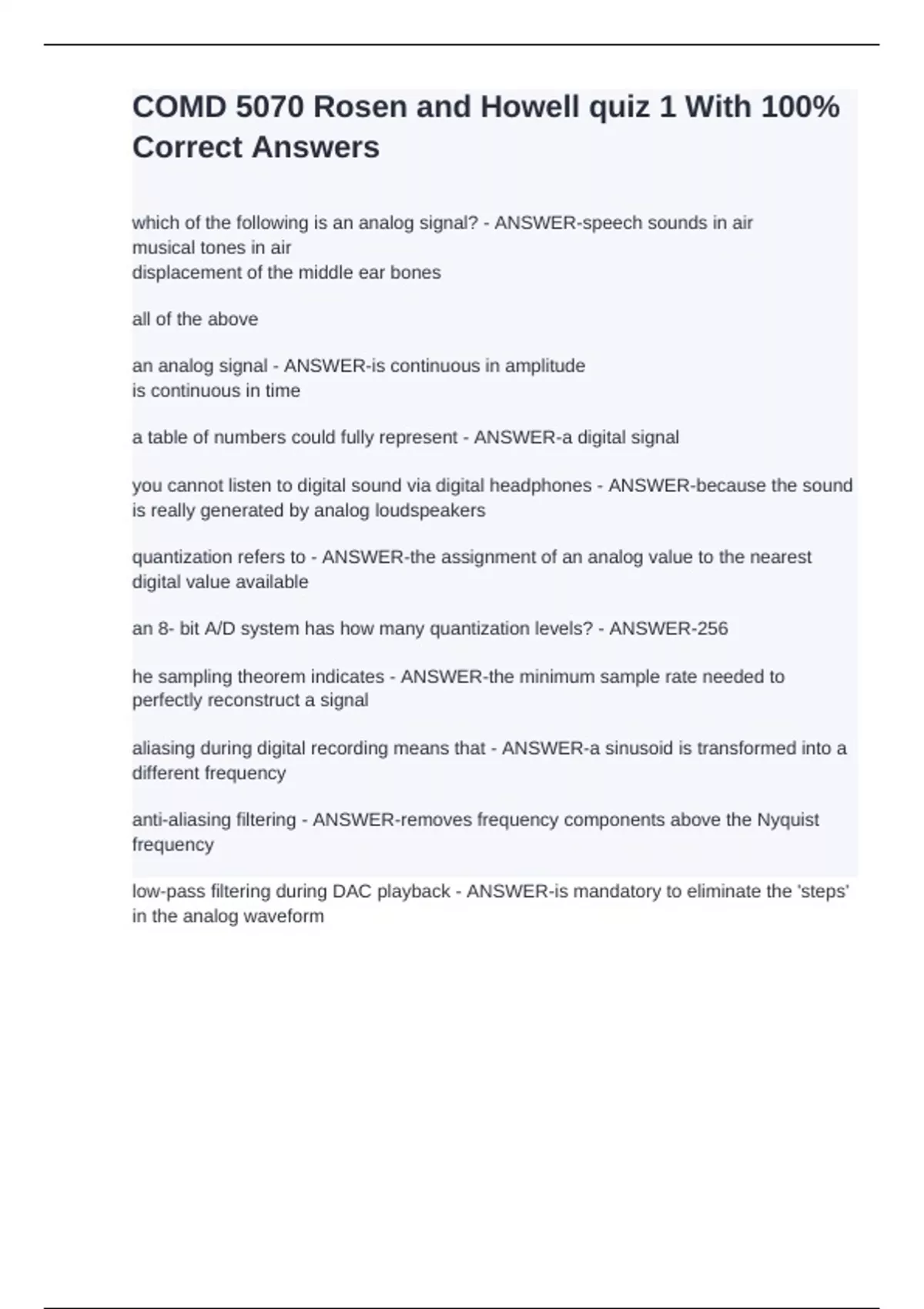 he sampling theorem indicates - ANSWER-the minimum sample rate needed to