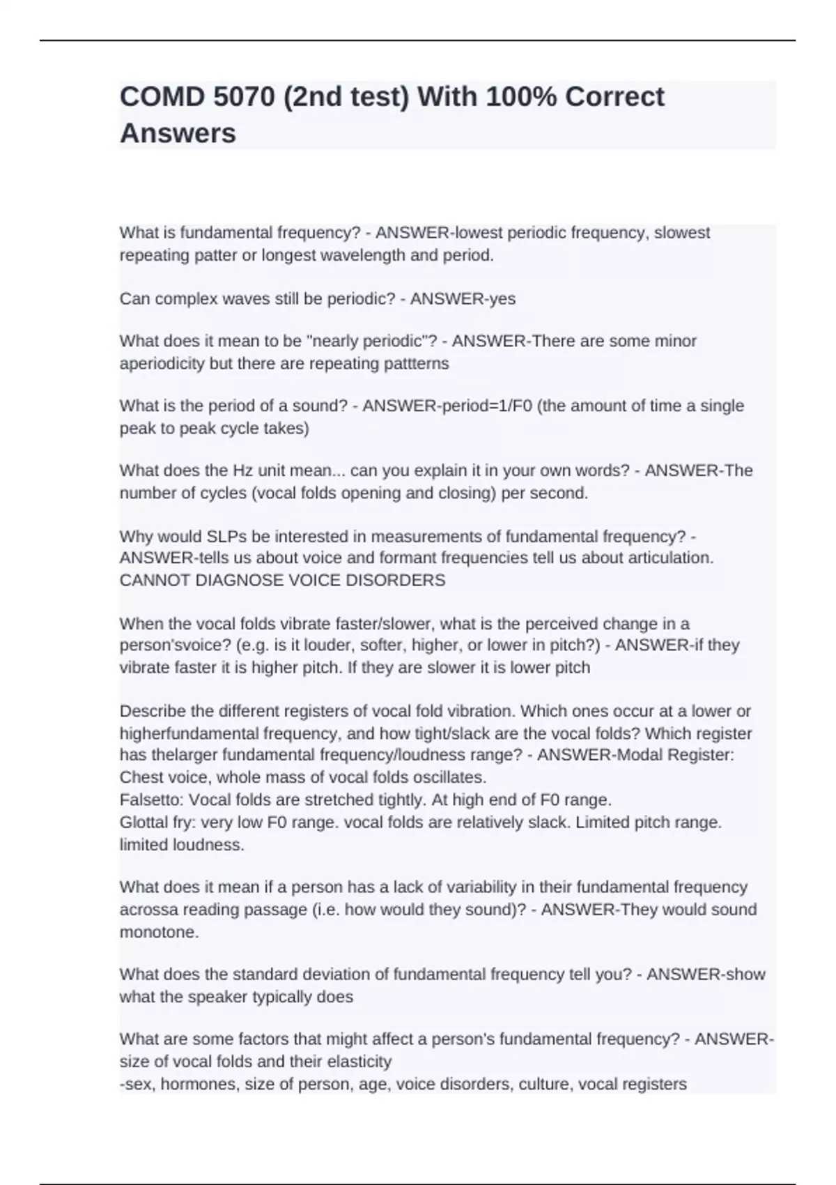 What is the period of a sound? - ANSWER-period=1/F0 (the amount of time a single