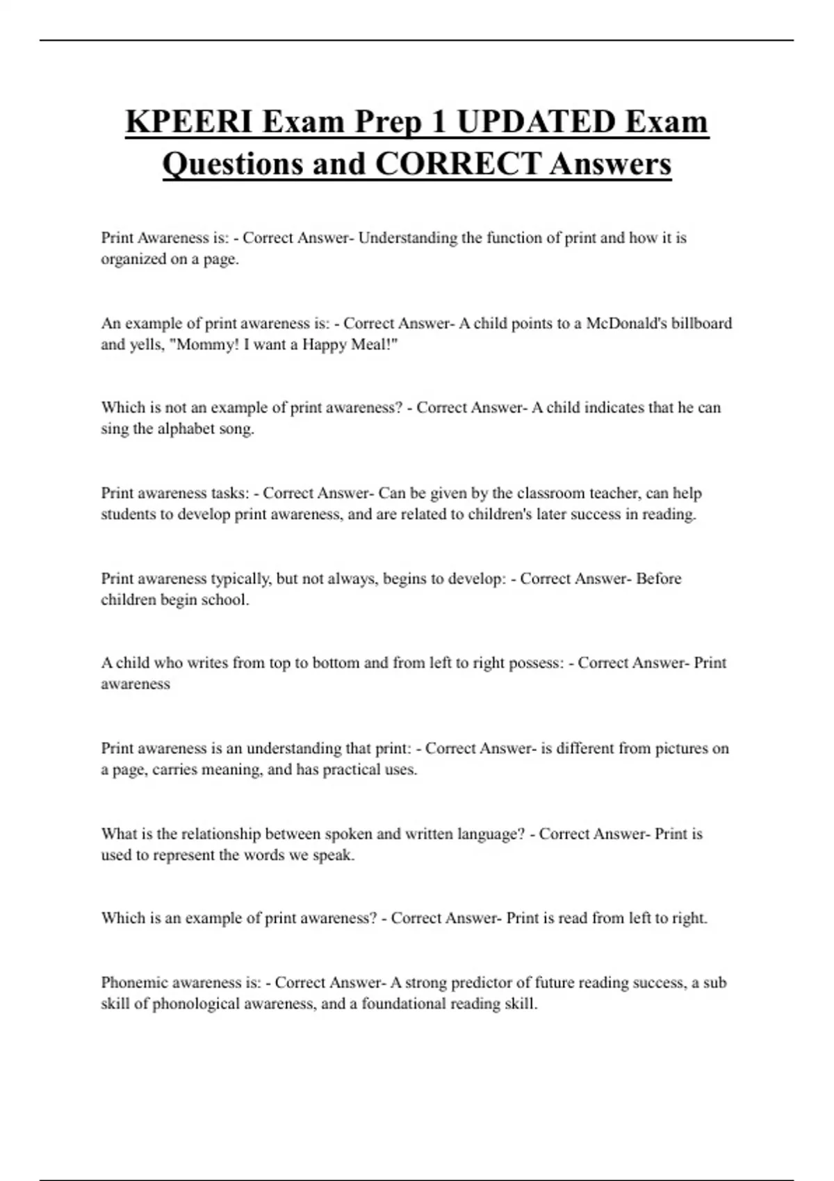 Print awareness is an understanding that print: - Correct Answer- is different from pictures on