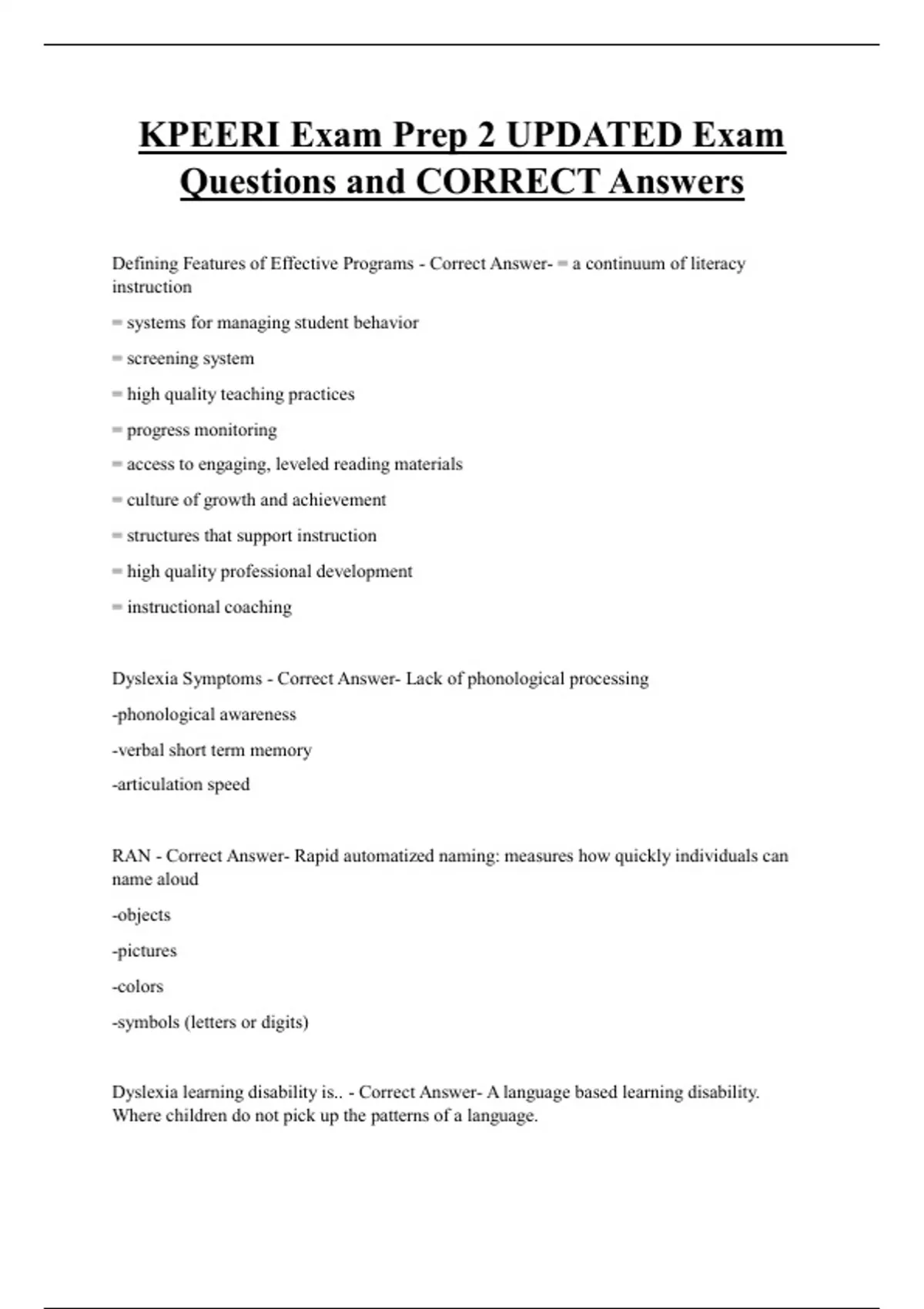 Dyslexia Symptoms - Correct Answer- Lack of phonological processing