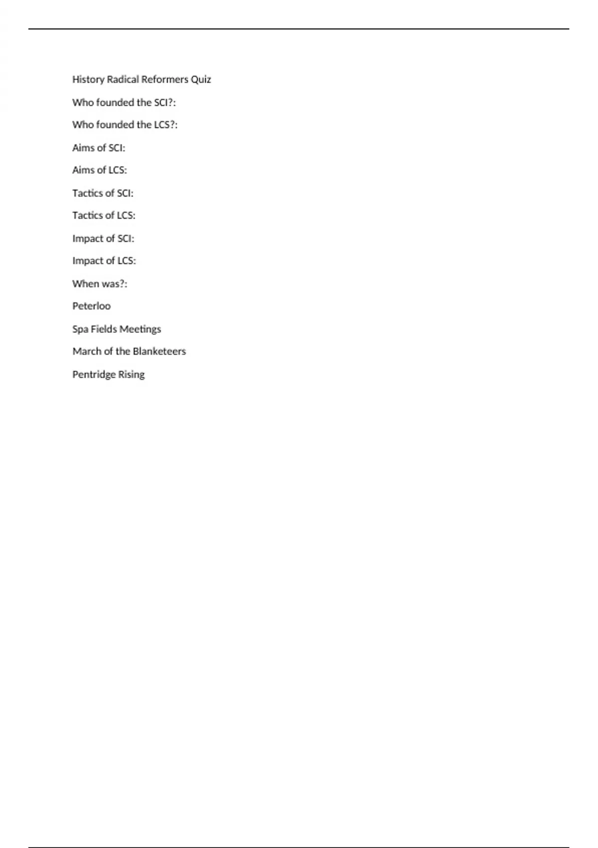 History Radical Reformers Quiz