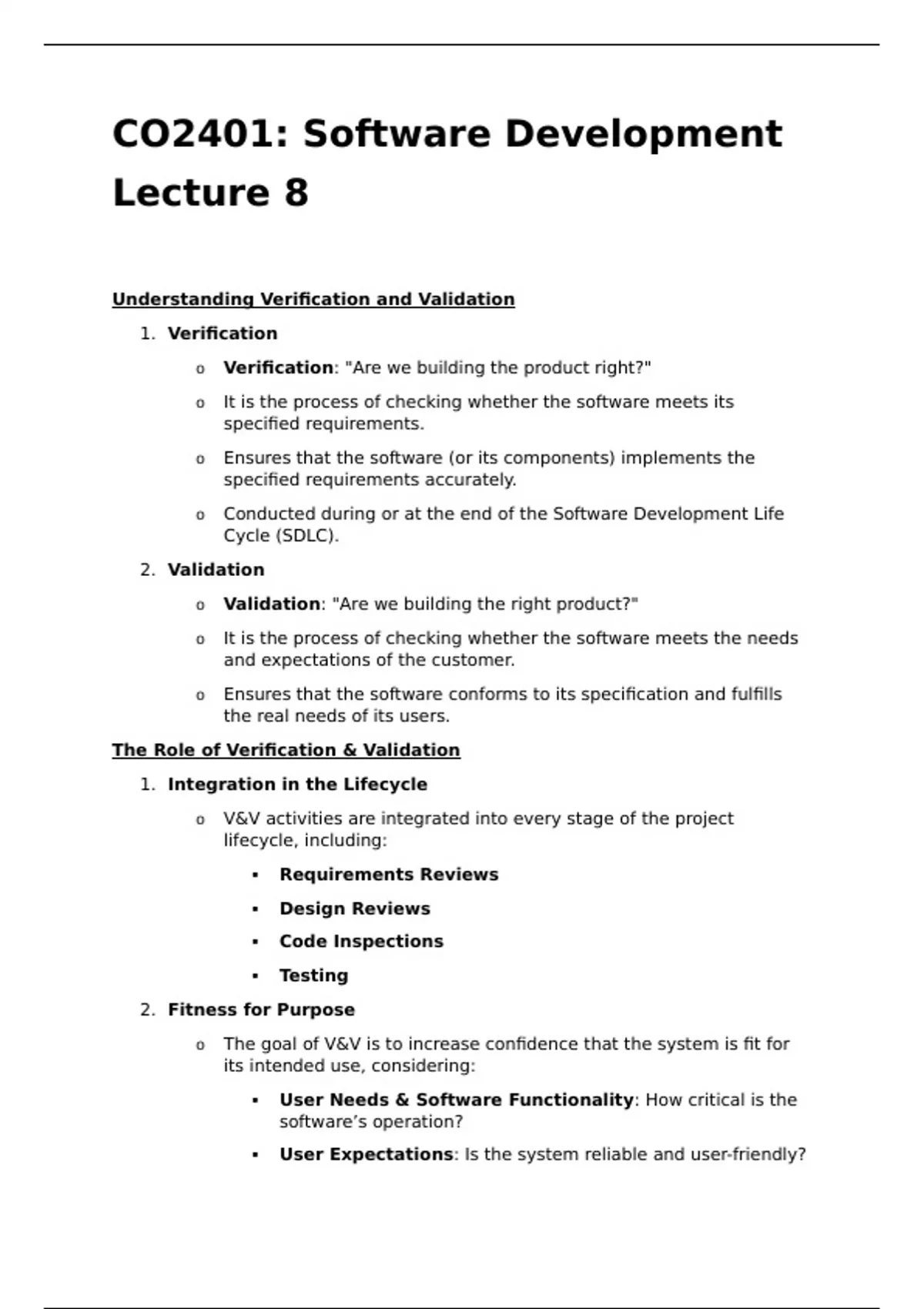 o V&V activities are integrated into every stage of the project