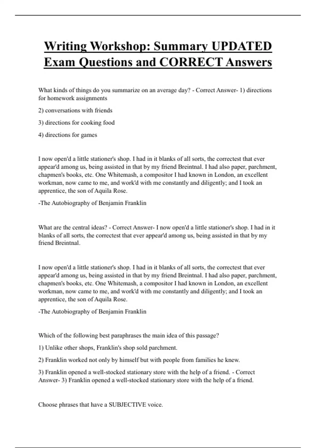 What are the central ideas? - Correct Answer- I now open'd a little stationer's shop. I had in it