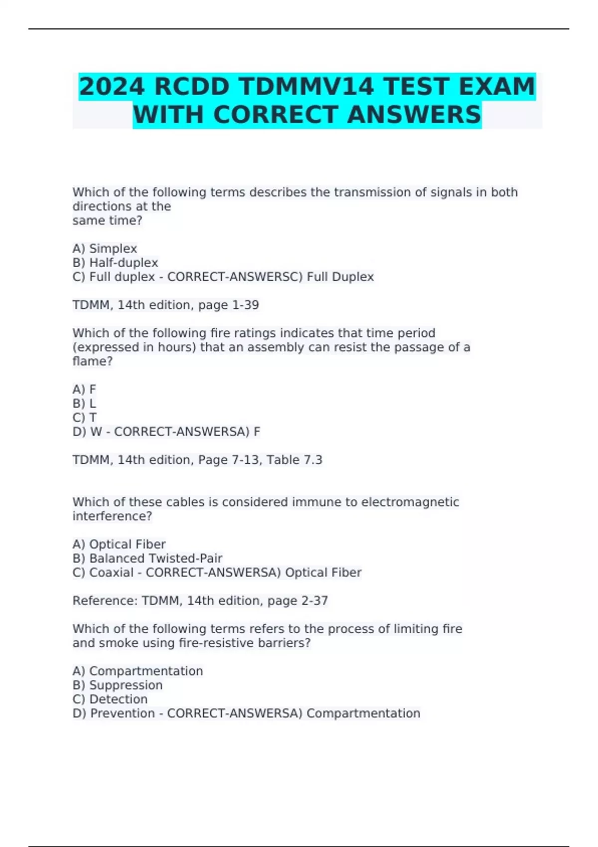 2024 RCDD TDMMV14 TEST EXAM WITH CORRECT ANSWERS