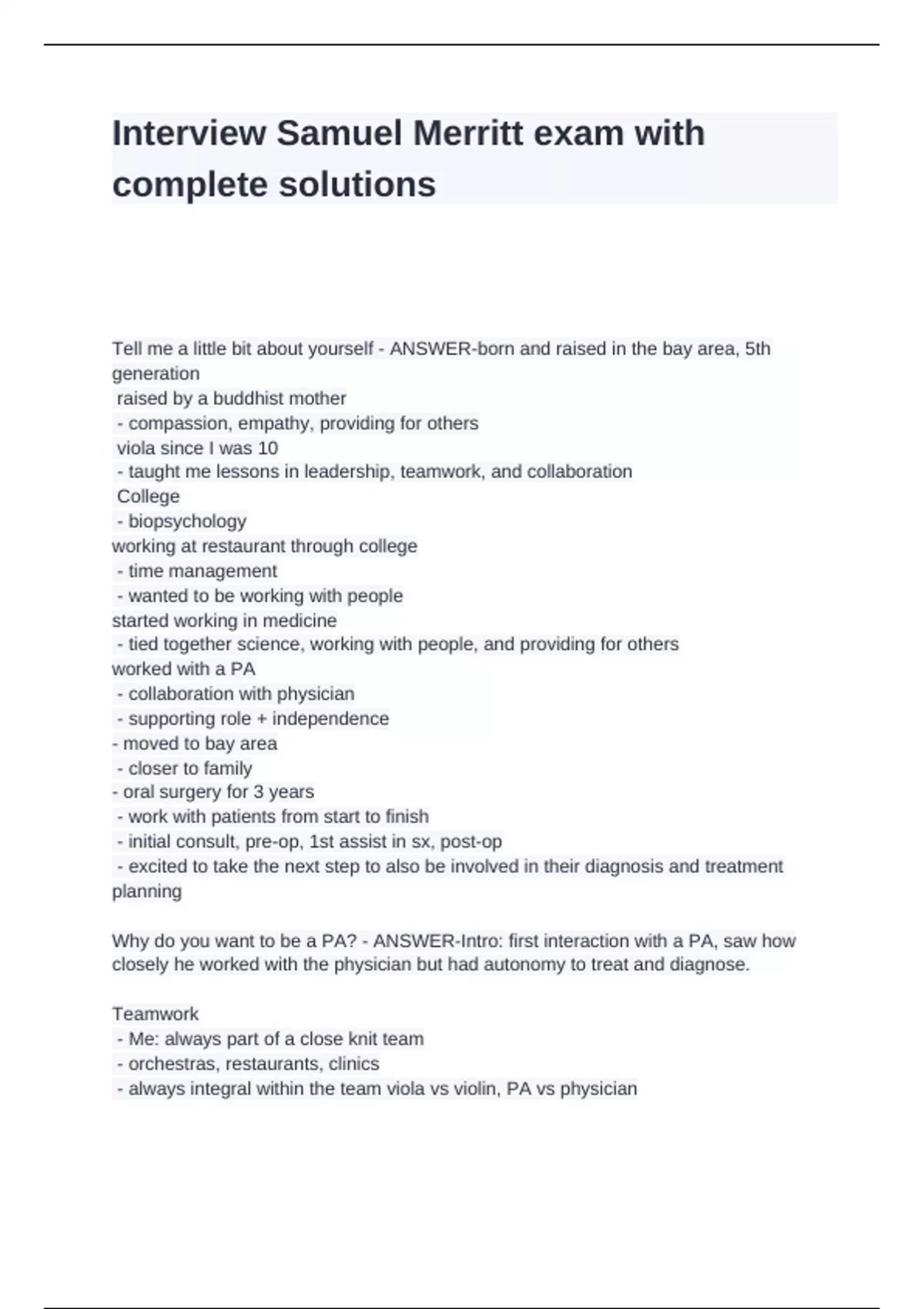 Why do you want to be a PA? - ANSWER-Intro: first interaction with a PA, saw how