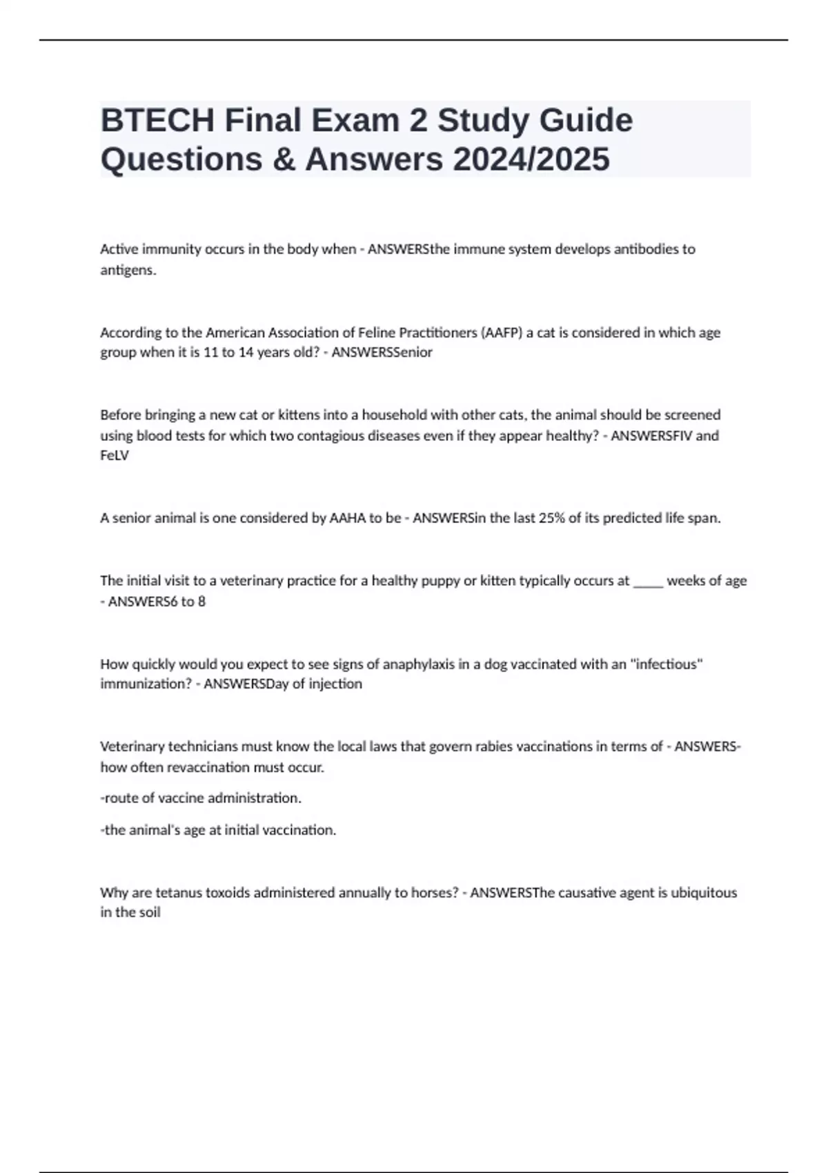 Questions & Answers 2024/2025